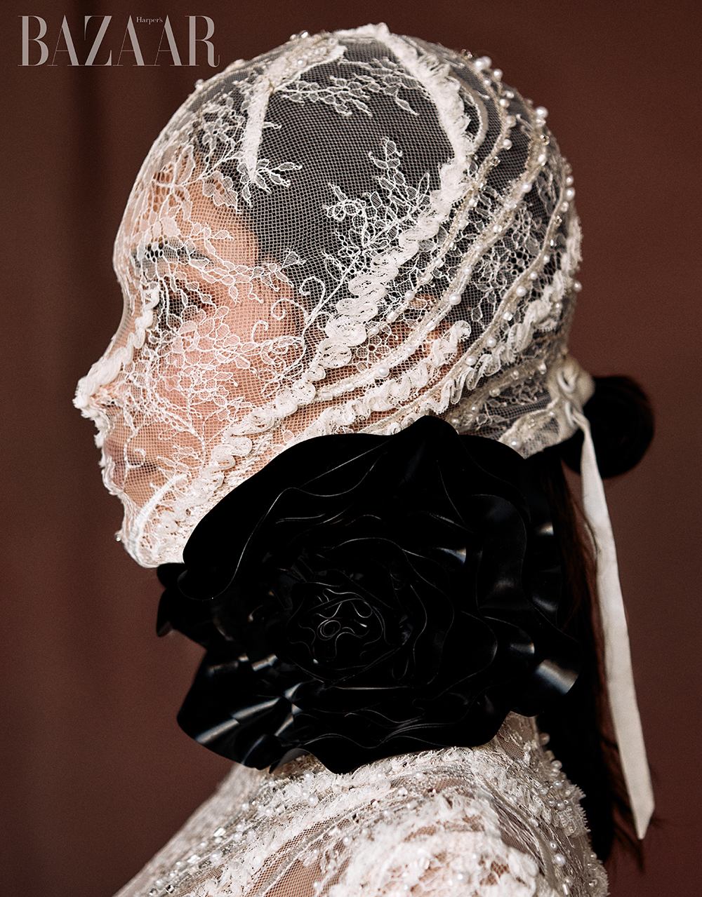 Tulle dress, ALAÏA. Gloves, Vex Skims.