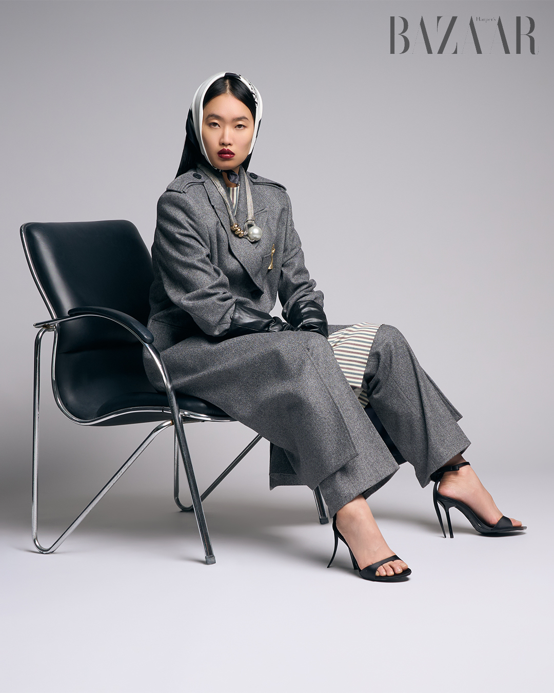 Áo khoác, đầm, quần và khăn: Zhyun.k. Giày: Zara.