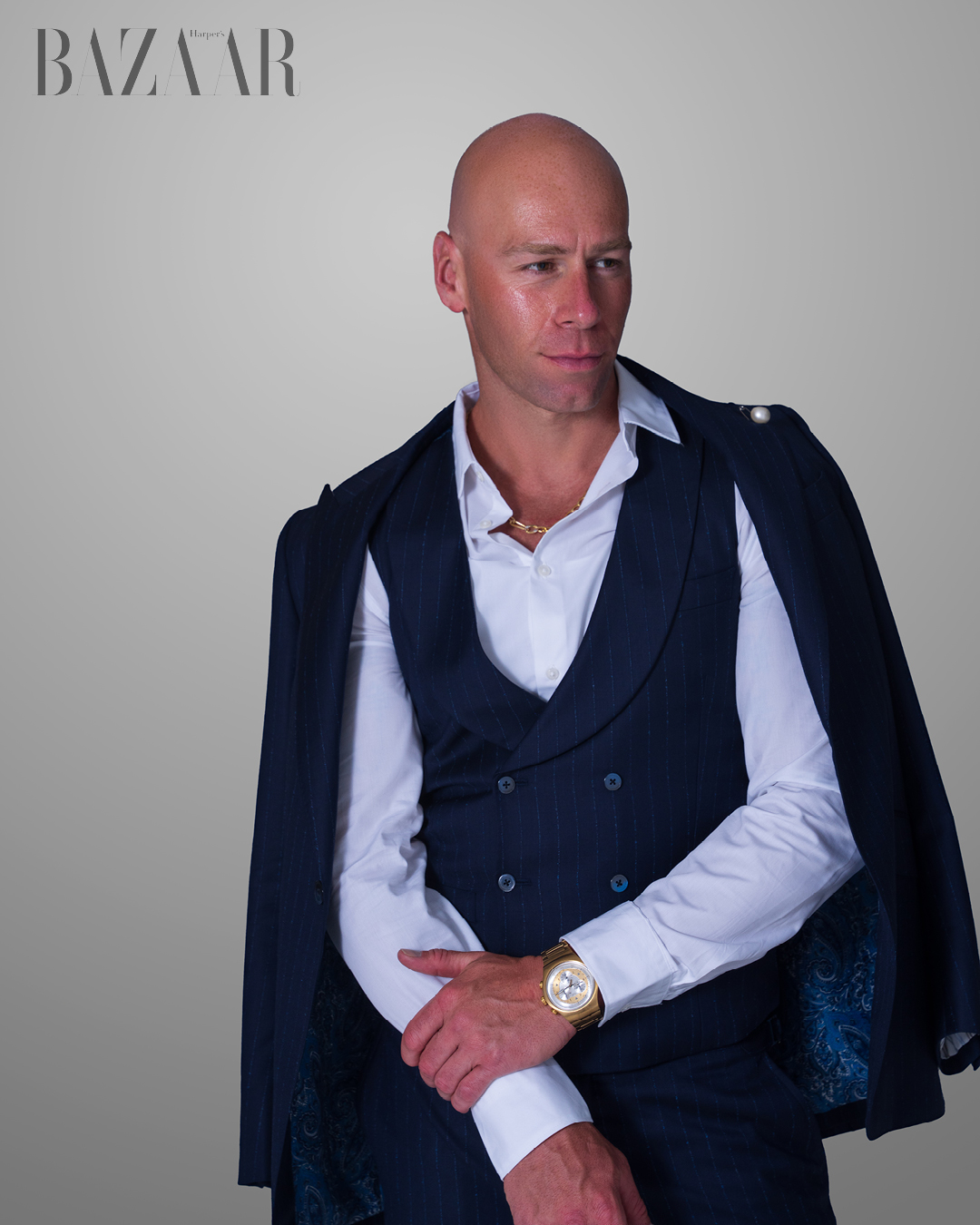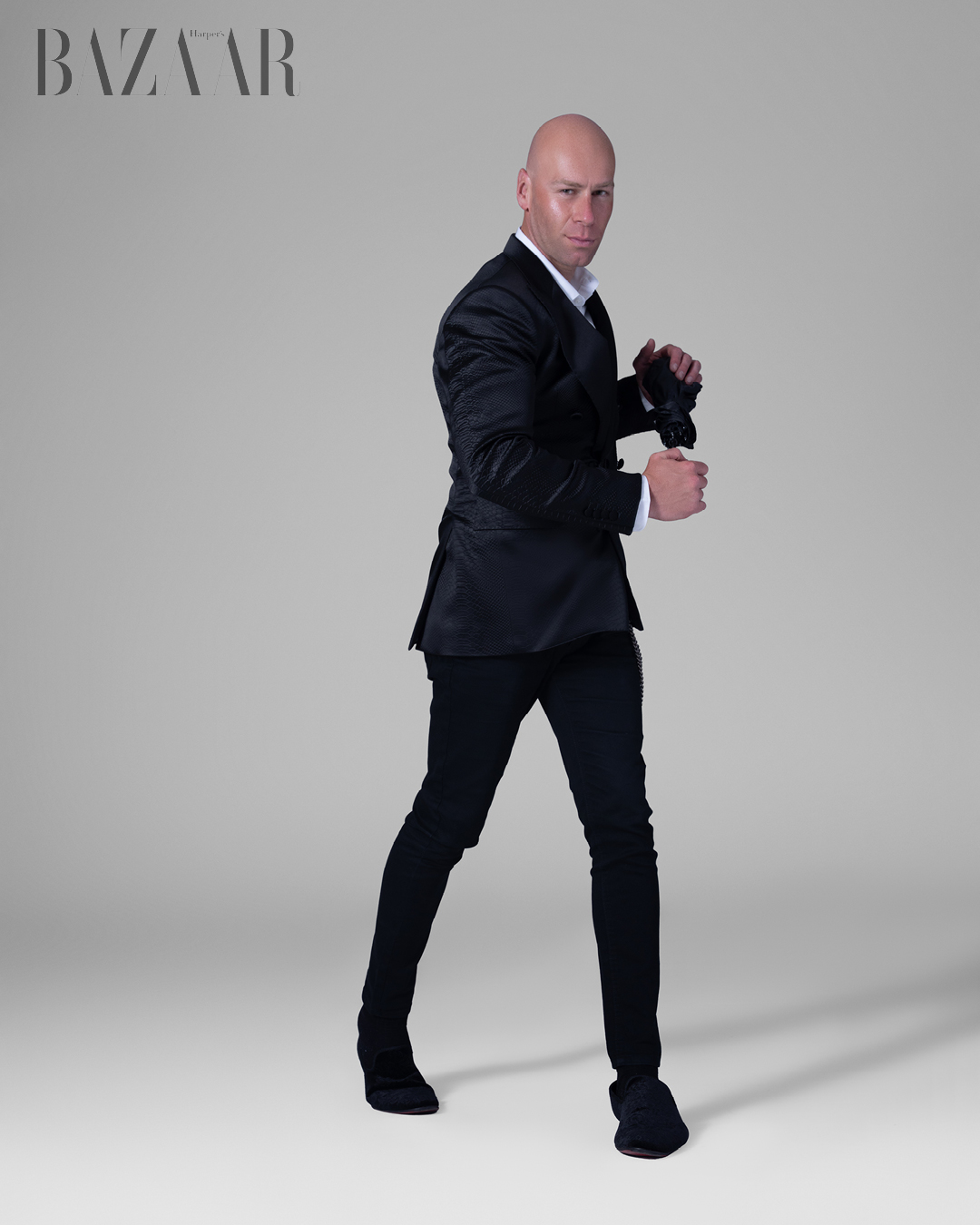 In between projects and training sessions, actor Sergio Delavicci pauses for a thoughtful exchange with Harper’s Bazaar. Known for his commanding presence on screen and grounded demeanor off it, he reflects on the craft of acting, personal resilience, and what it takes to keep moving forward – body, mind, and spirit – when the spotlight turns off.