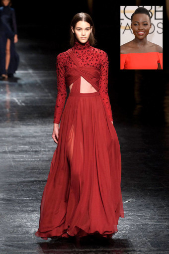 Dự đoán xem Lupita sẽ mặc gì tại đêm trao giải Oscar? Nếu cô đã được tán thưởng trong chiếc đầm đỏ của Ralph Lauren tại Quả cầu vàng thì chiếc đầm cùng tông màu cut out độc đáo của Prabal Gurung trong bộ sưu tập Thu 2014 vừa trình làng chính là một gợi ý hoàn hảo.