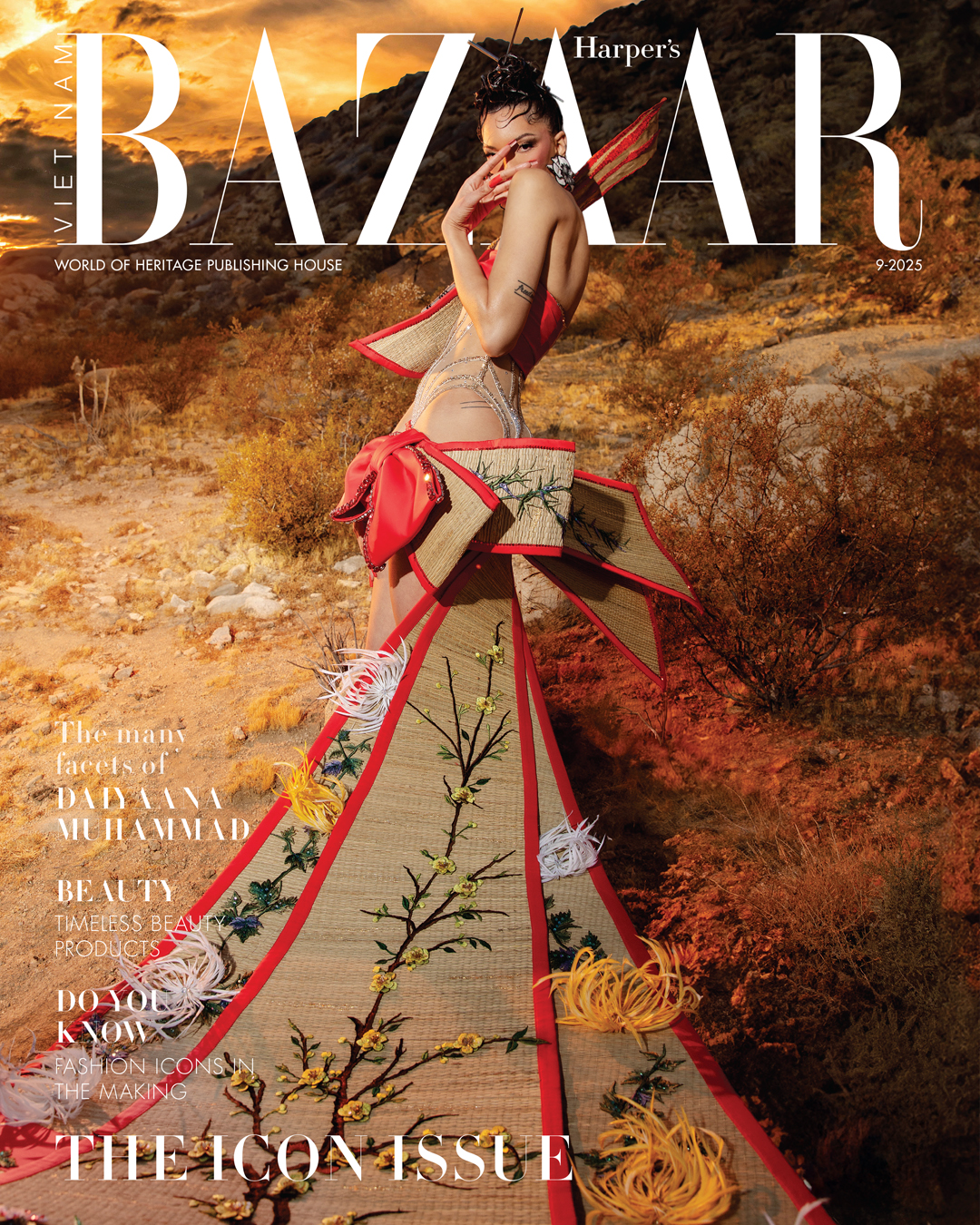 Daiyaana Muhammad on Harper’s Bazaar Vietnam, September 2025. Dress, Do Long. Jewelry, The Jewelry Album. Shoes, Steve Madden.