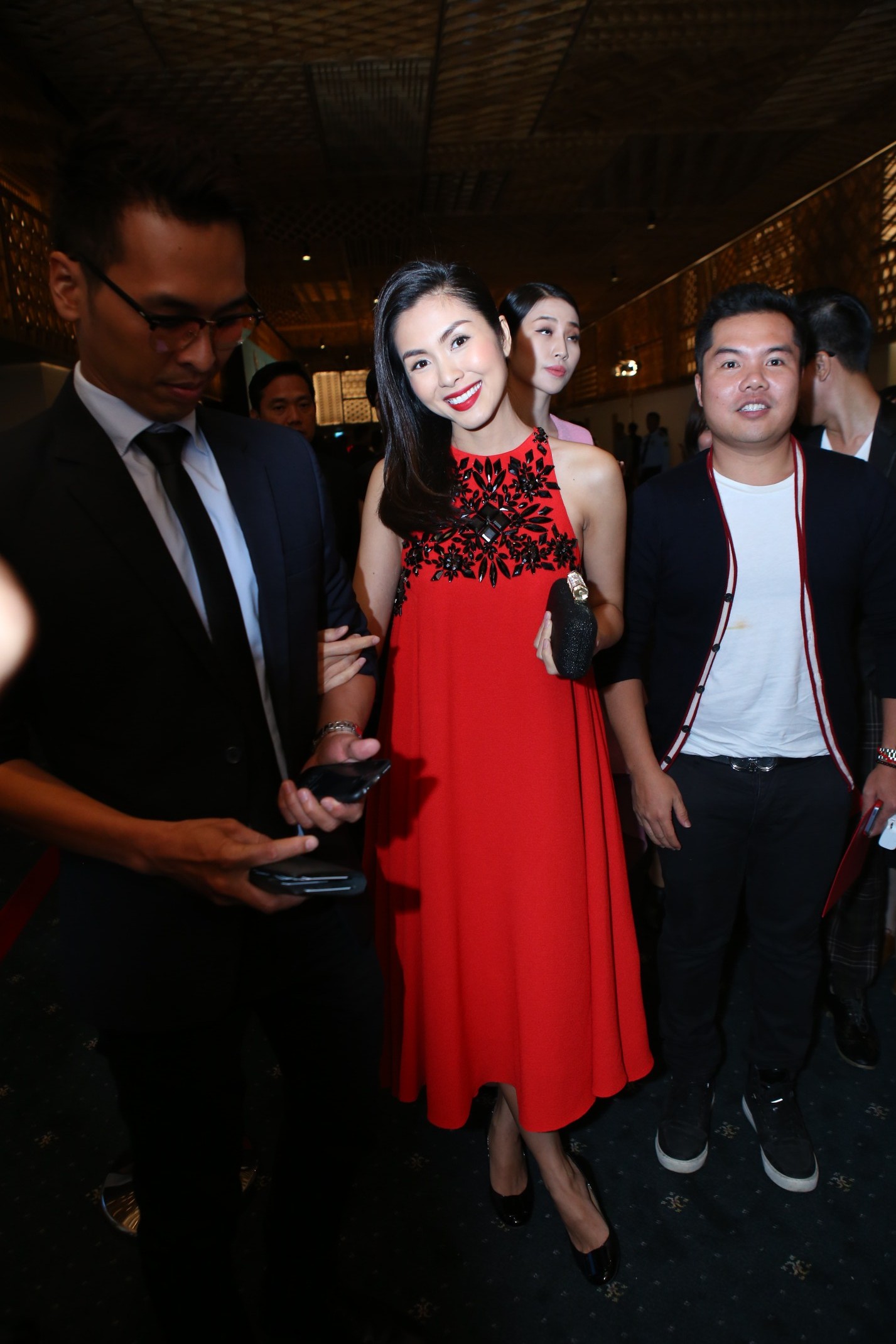 Bộ 3 đỏ rực trên hàng ghế đầu: Hồng Nhung, Đoan Trang, Tăng Thanh Hà