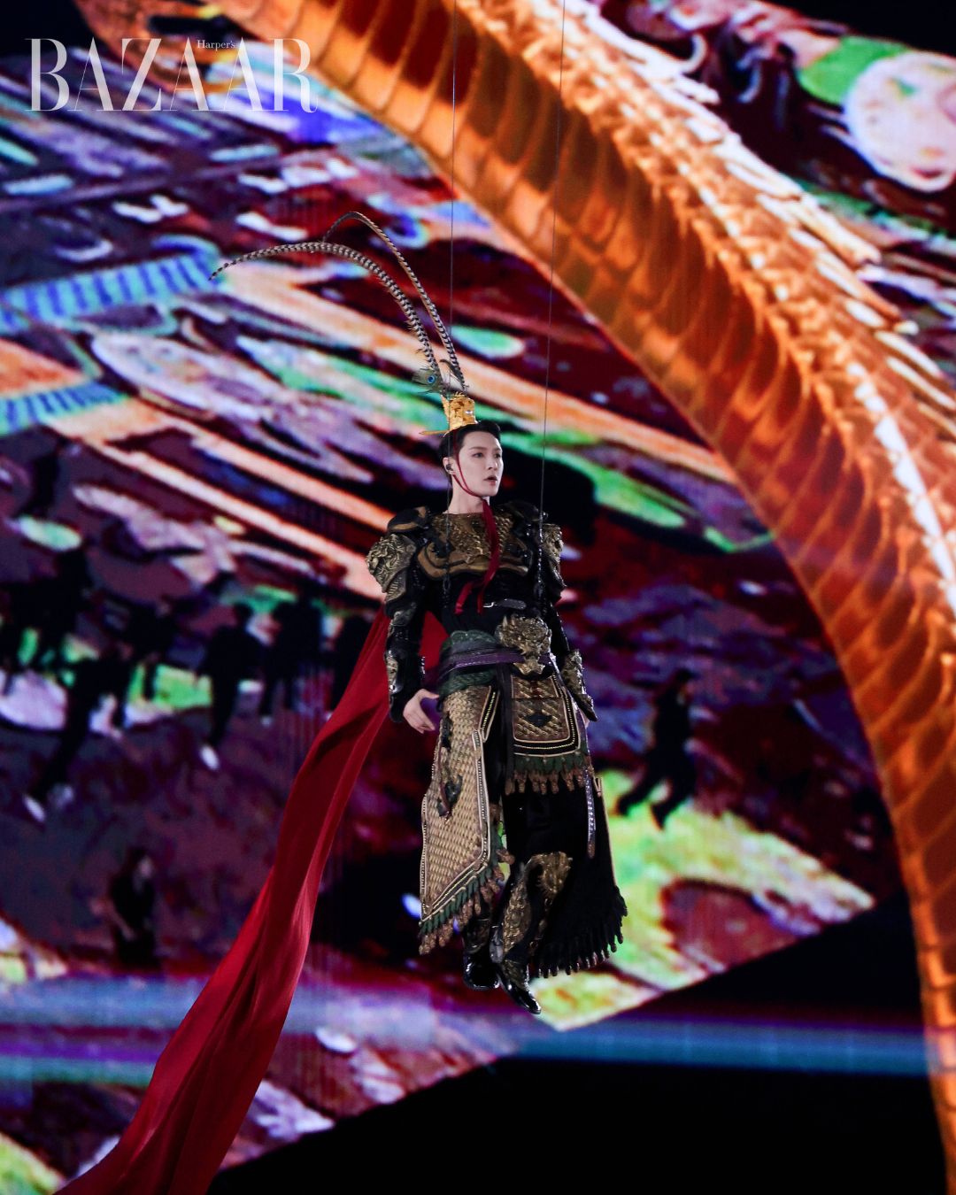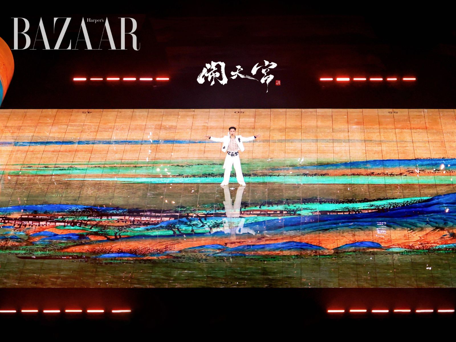 Concert mở màn với bức tranh kỹ thuật số “Thiên Lý Giang Sơn Đồ”, sân khấu trung tâm rộng hàng nghìn mét vuông biến thành không gian nghệ thuật ba chiều, đưa cảnh sắc non nước truyền thống Trung Quốc đến trước mắt khán giả.