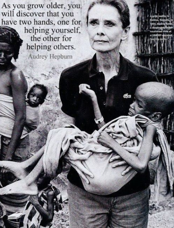 “Càng lớn tuổi bạn càng nhận ra rằng bạn có hai bàn tay, một để cho bản thân và một để giúp đỡ người khác” – Audrey Hepburn.