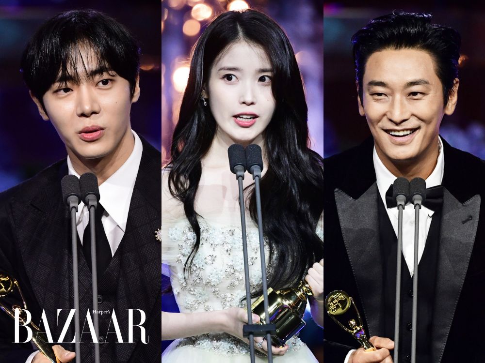 IU, Choo Young Woo, Joo Ji Hoon là những ngôi sao chạm tay đến cúp vàng tại Giải Truyền Hình Rồng Xanh 2025. Ảnh: SportsChosun