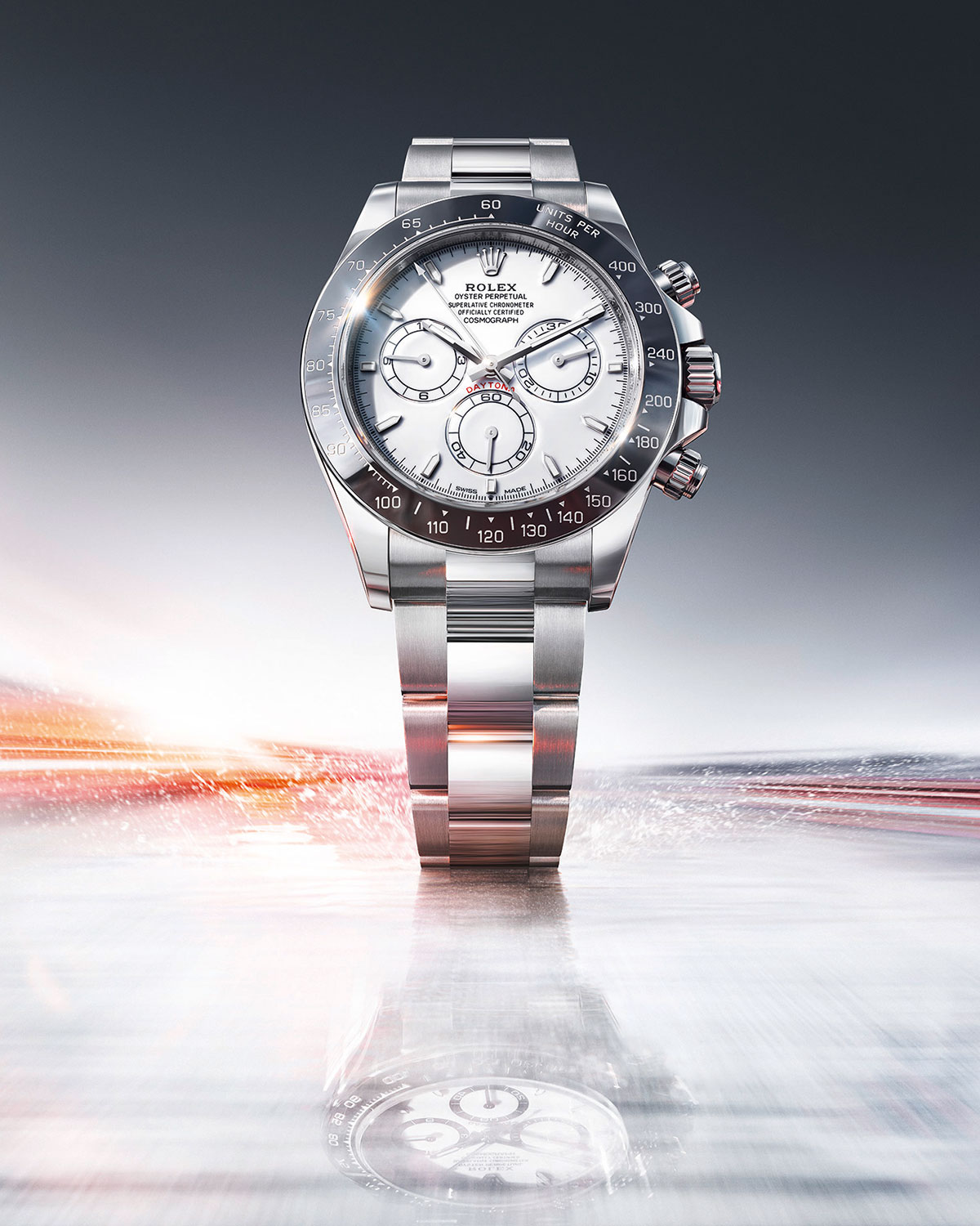 Đồng hồ Oyster Perpetual Cosmograph Daytona phiên bản Rolesium với mặt số tráng men trắng và vành đồng hồ Cerachrom màu than chì. Ảnh: Rolex