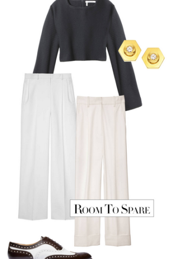 Không phải ngày nào trong tuần làm việc bạn cũng cần diện đồ thật nghiêm trang. Những quý cô năng động có thể chọn kiểu quần ống suôn rộng lưng cao, thích hợp với khí hậu nóng hiện nay. Nếu áo crop top hơi quá phá cách, bạn có thể chọn áo kiểu hoặc sơ-mi với chất liệu mỏng nhẹ bỏ gọn vào quần. Bộ trang phục này hợp với cả giày sandal cao gót dây mảnh (strappy heels) lẫn Oxford đế bằng.