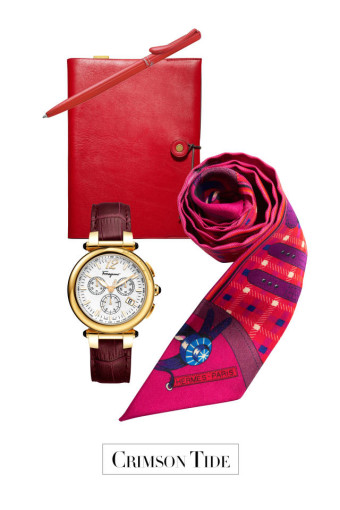 Một khi đã chọn túi xách đồng họa tiết với áo, những phụ kiện khác có thể chỉ cần trùng tông màu chính của trang phục. Với những màu sắc nổi bật như đỏ, nên chú ý gia giảm sắc tố trên đồng hồ hoặc giày để người đối diện dễ chịu hơn.