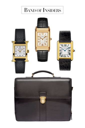 Đối với những trang phục casual như thế, hãy chọn phụ kiện sang trọng và nghiêm túc hơn để cân bằng lại. Đồng hồ mặt vuông dây da là lựa chọn thích hợp, cá tính nhưng không quá nữ tính. Còn cặp táp da trơn này là dấu hiệu để nhận biết bạn đang đi làm chứ không phải đi chơi.