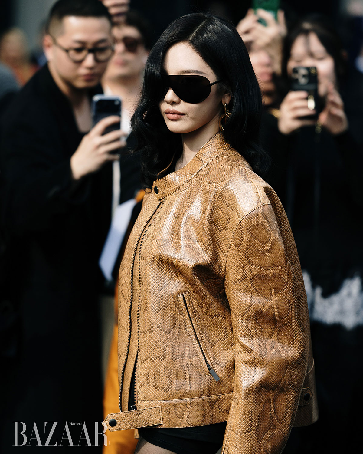 aespa từ khi ra mắt đến nay luôn được gọi là “nhóm nhạc AI” vì visual siêu thực và concept vị lai hướng đến công nghệ tương lai. Trong màn xuất hiện tại Milan cùng Gucci, NingNing đã thể hiện bản chất này thông qua cặp mắt kính to bản che khuất gần nửa mặt.