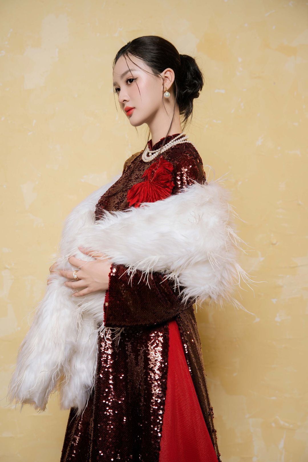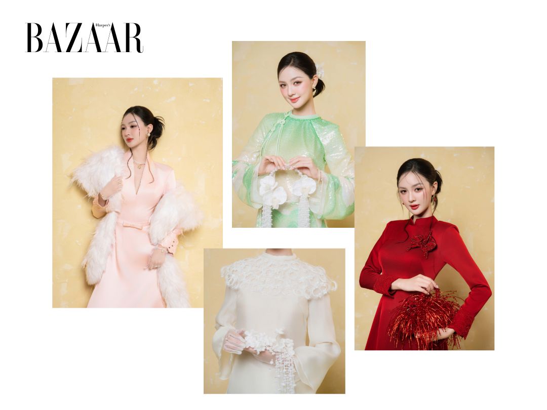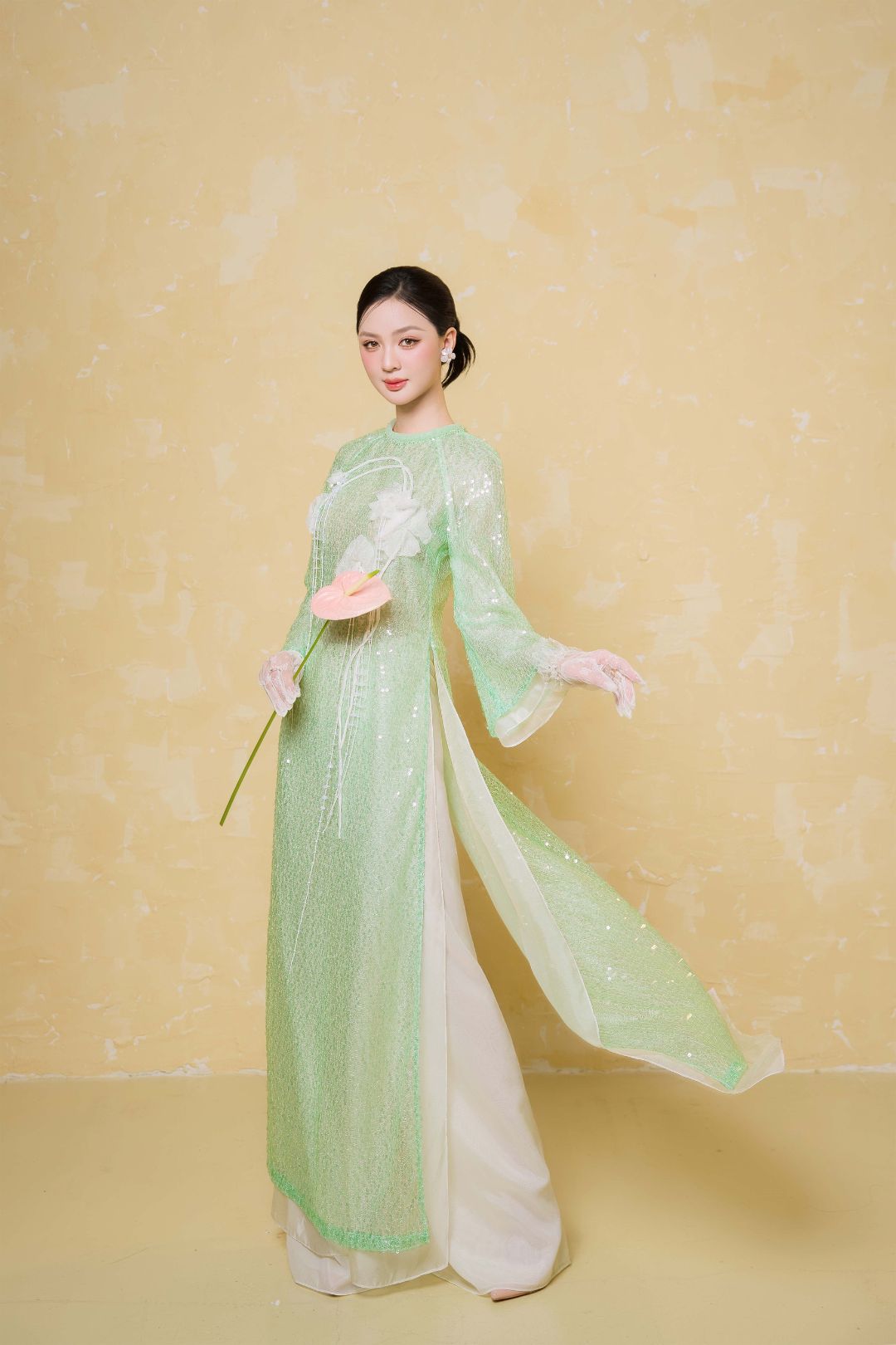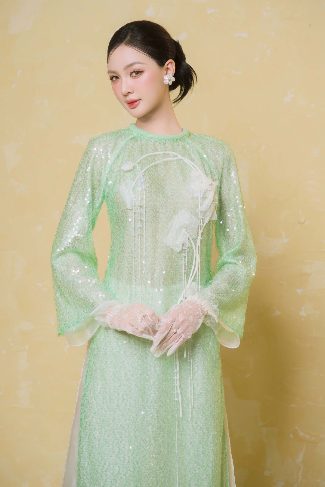 Từ những họa tiết cá chép hóa rồng cho đến những bó hoa xuân được đính kết thủ công, mỗi chi tiết đều mang ý nghĩa về sự thịnh vượng và may mắn. Các phom dáng được tinh chỉnh để ôm lấy đường cong cơ thể một cách vừa vặn, tôn vinh nét đẹp Á Đông nhưng không gây gò bó, phù hợp với nhịp sống năng động hiện nay.
