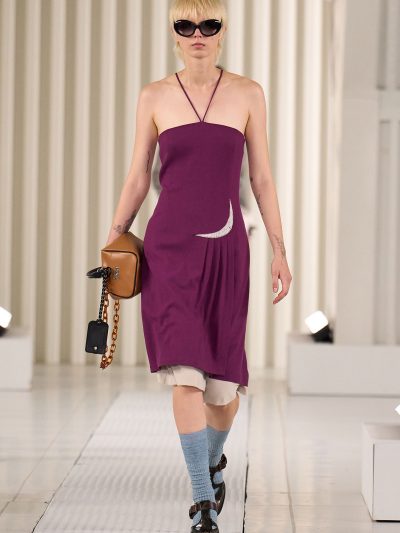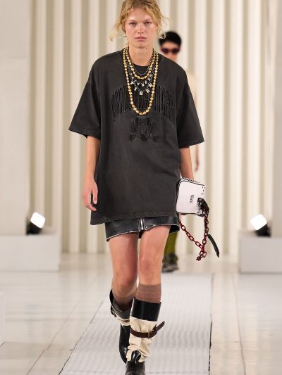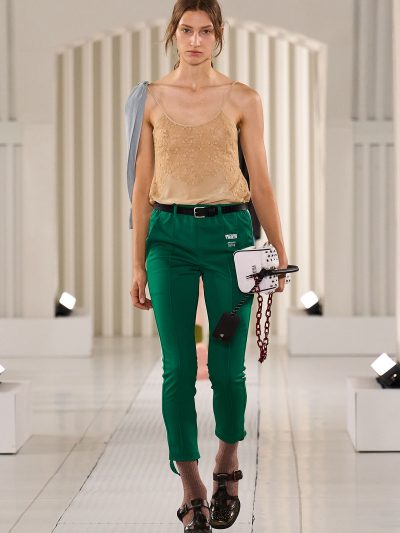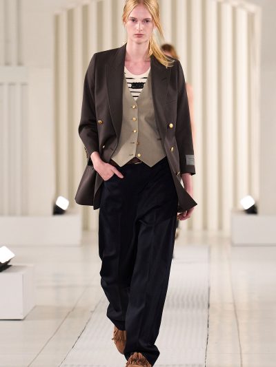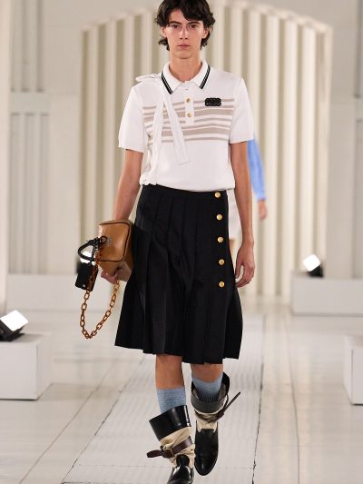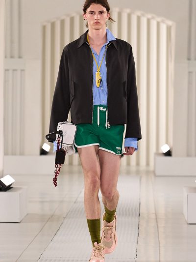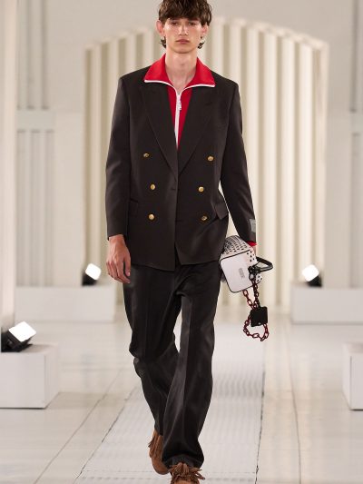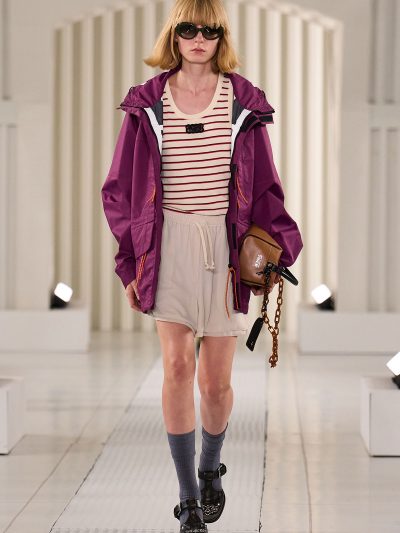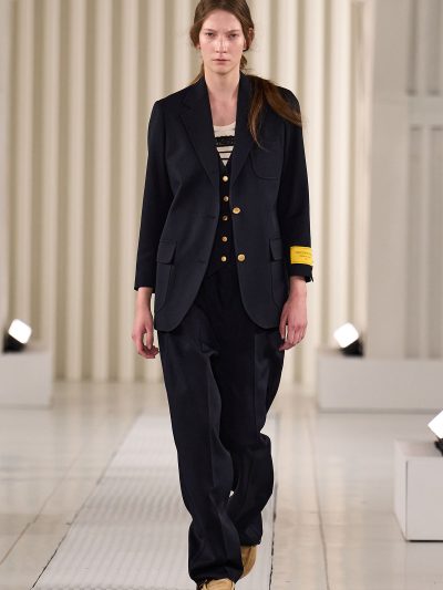 Kể từ khi đưa Onitsuka Tiger đến với Tuần lễ thời trang Milan, giám đốc sáng tạo Andrea Pompilio muốn nhấn mạnh rằng đây không chỉ là thương hiệu chuyên về giày thể thao, mà là một thương hiệu cung cấp tủ đồ toàn diện cho khách hàng. Bộ sưu tập Xuân Hè 2026 của Onitsuka Tiger tiếp tục đẩy mạnh phương hướng phát triển này, khi có rất ít item thuần thể thao xuất hiện trên sàn diễn. Chỉ có một chút tinh thần thể thao thể hiện qua áo tracksuit vàng, gợi nhắc đến trang phục mà Uma Thurman đã mặc trong bộ phim Kill Bill (2003).