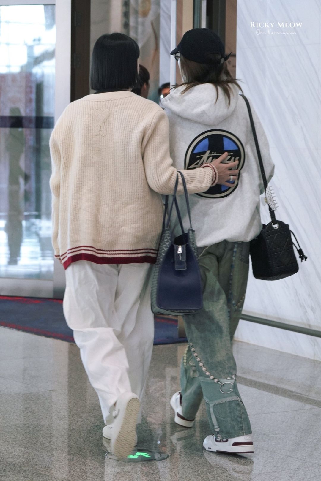 Orm Kornnaphat cùng mẹ tại sân bay. Ảnh: @RickyMeow77