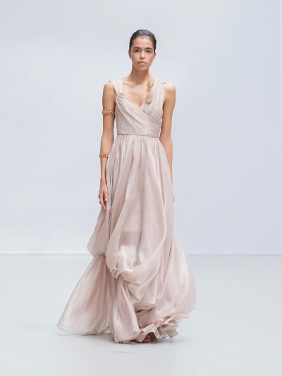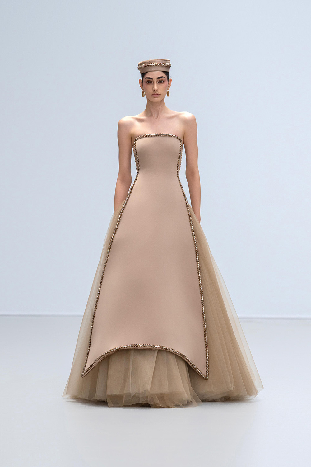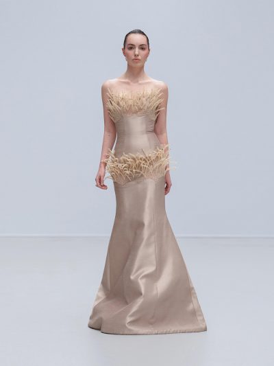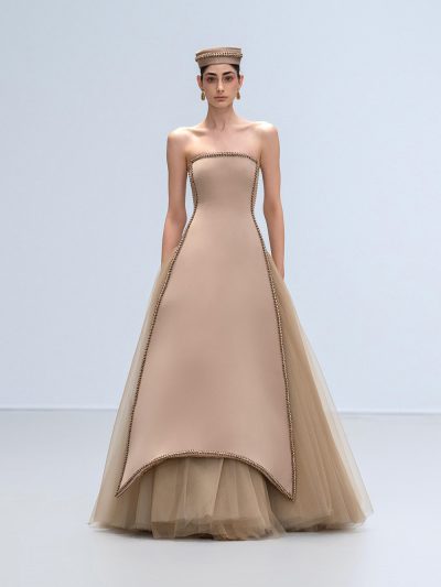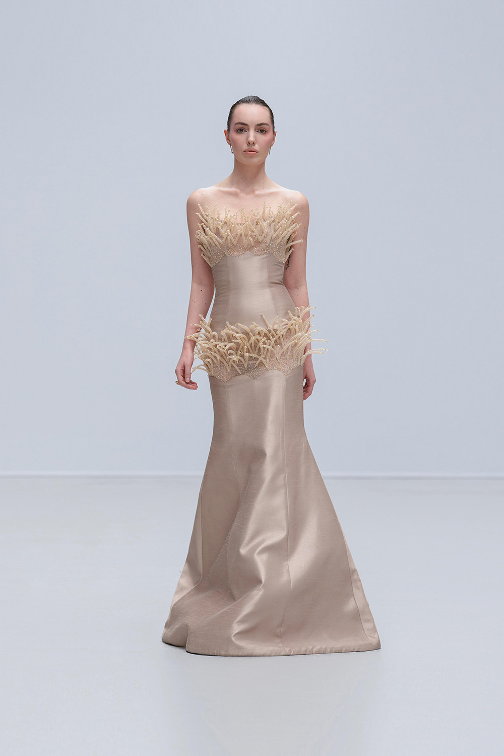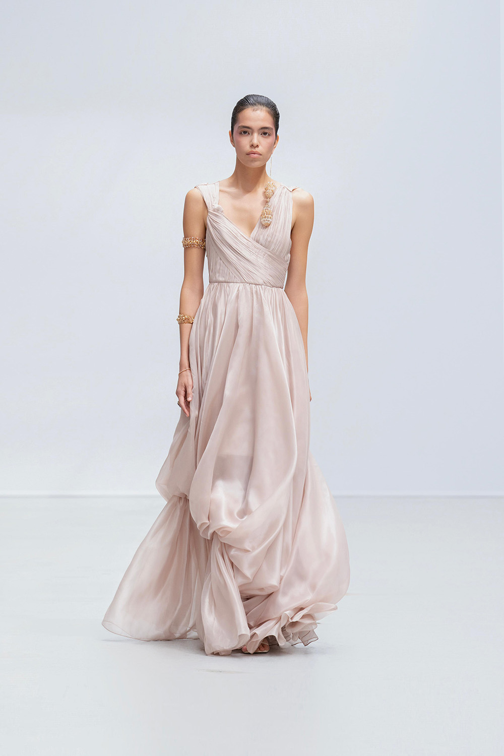 Phong cách thiết kế của thương hiệu mang đậm tinh thần Glamorous và Romantic, với thế mạnh ở những bộ dạ hội lộng lẫy, chi tiết đính kết tinh xảo, chất liệu bay bổng như chiffon, organza, tulle, silk và bảng màu chủ đạo gồm beige, rose gold, silver, trắng tinh khiết.