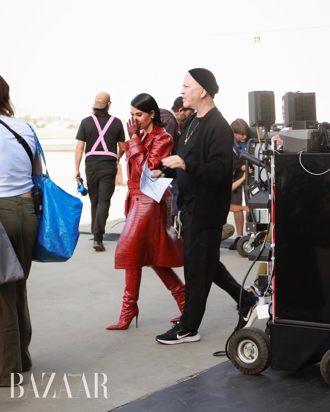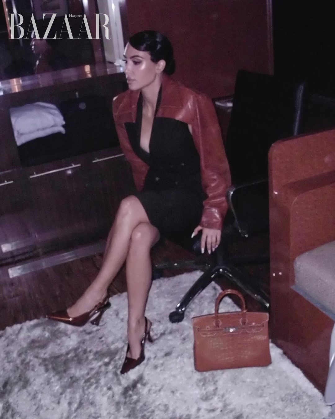 Kim Kardashian cùng túi Hermès Birkin bạch tạng trên phim trường. Ảnh: @kimkardashian