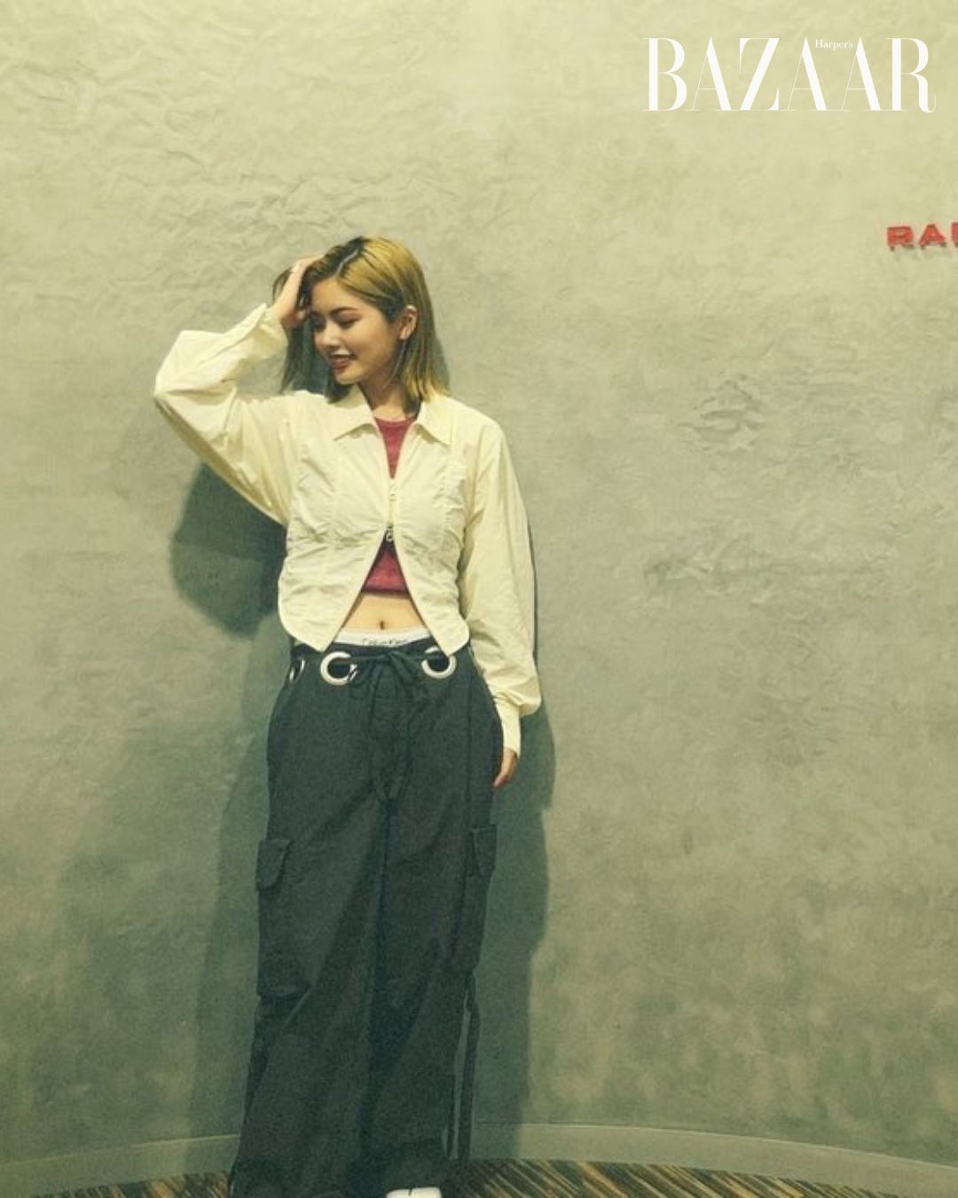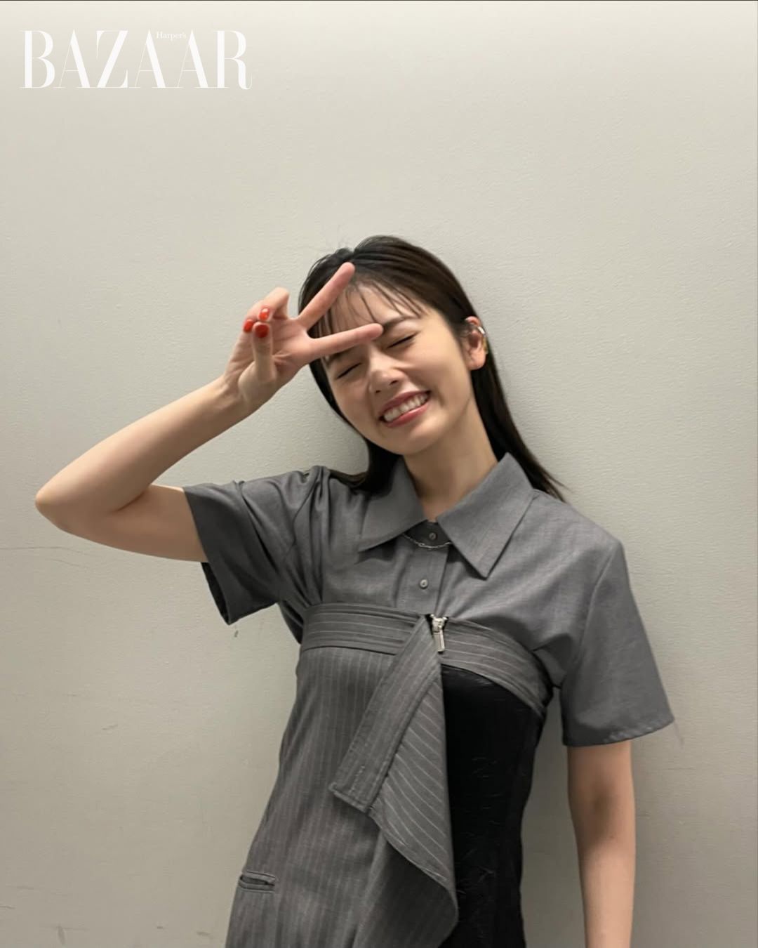 Phong cách đời thực của Koshiba Fuka khác biệt nhiều so với nhân vật cô khắc họa trong phim Marry My Husband phiên bản Nhật. Tủ đồ của nữ diễn viên chịu ảnh hưởng lớn từ street style hiện đại như quần cargo, áo kéo khoá, lộ cạp quần… và cũng không ngại những item có phần bụi bặm như jeans cào rách, làm nên vẻ ngoài gai góc.