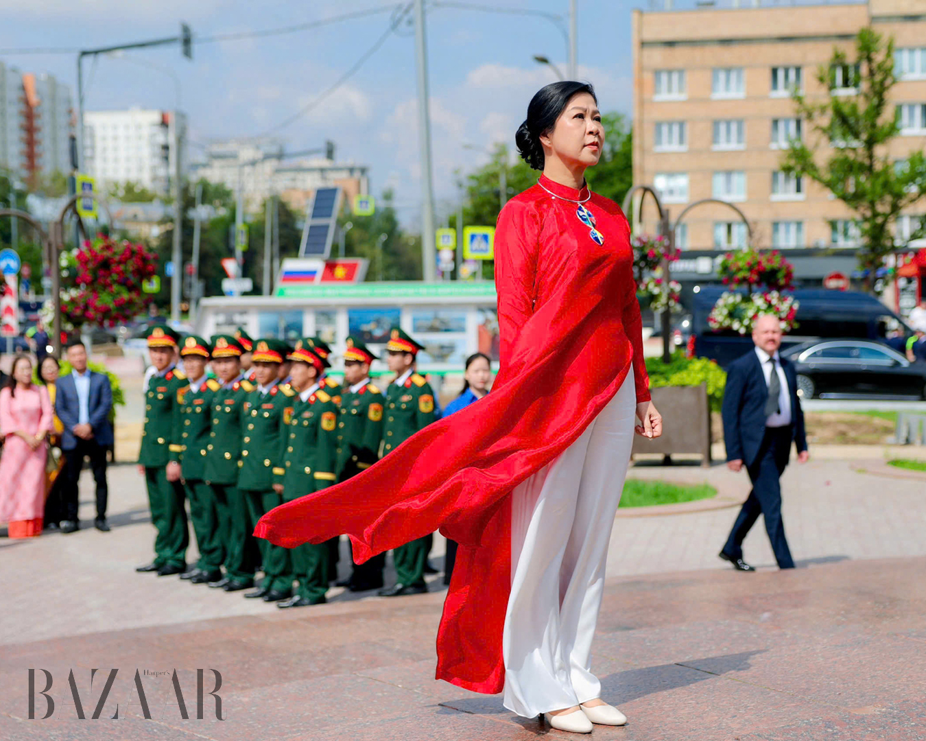Tại Lễ hội Văn hóa Việt Nam 2025 tại Nga nhân kỷ niệm 75 năm quan hệ ngoại giao giữa hai nước, bà lựa chọn áo dài nhiều màu sắc để phù hợp với từng hoạt động.