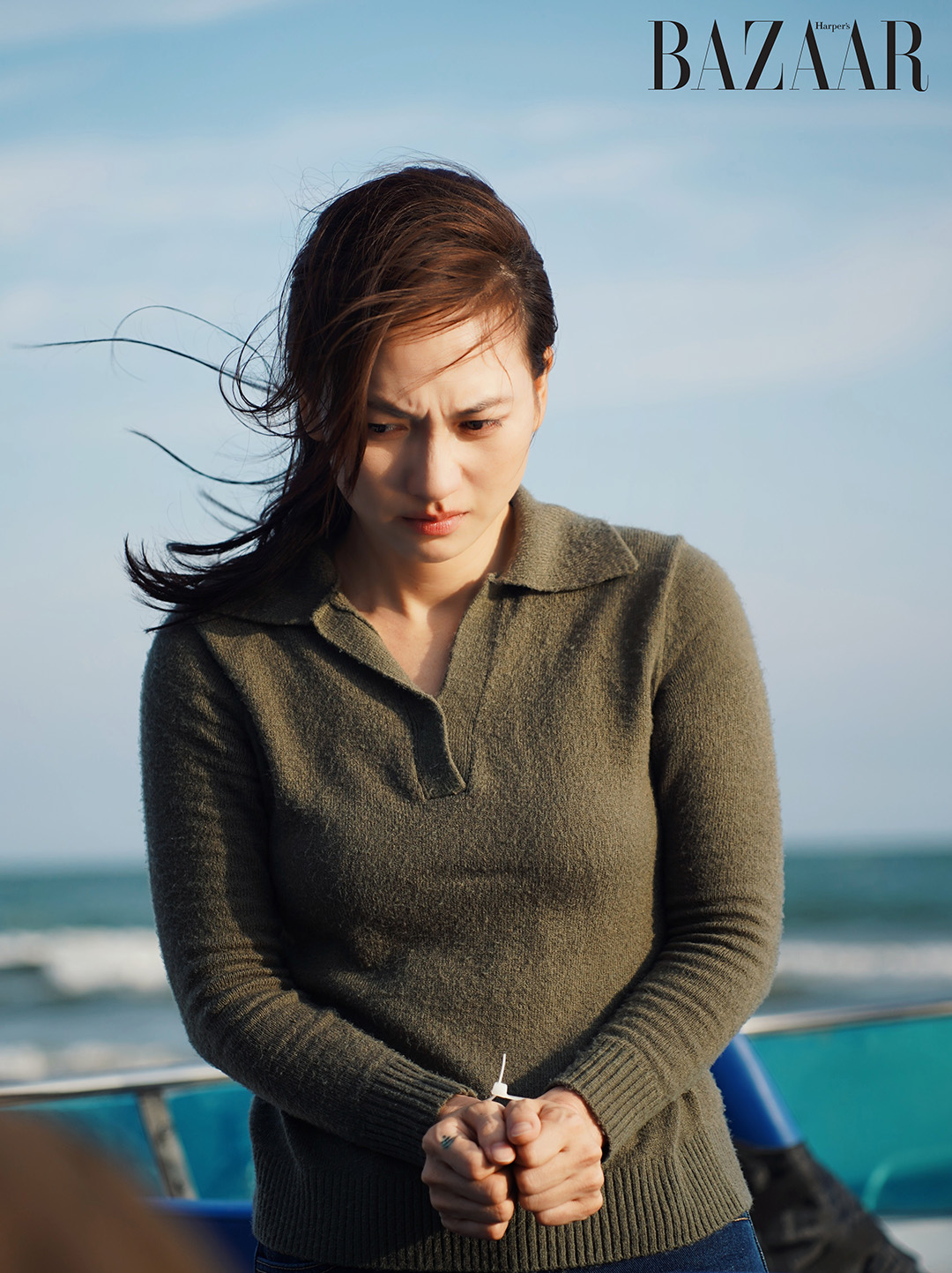 Rồi đến câu hỏi của bé Tô: “Mình lại phải đi hả mẹ? Khi nào mình mới được ở yên một chỗ?” như một mũi dao nhỏ chạm vào nơi sâu nhất của người xem. Trong khung cảnh gió biển thổi tung mái tóc, hình ảnh Ngọc cõng con đi giữa bờ kè trở thành biểu tượng cho hành trình làm mẹ: mong manh nhưng kiên cường, yếu đuối mà vẫn đầy sức mạnh.