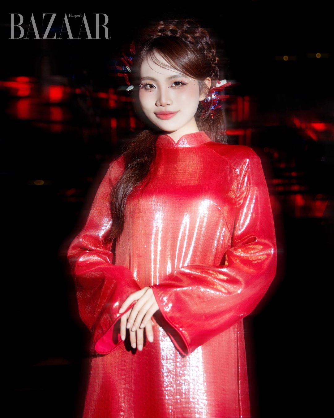 Phương Mỹ Chi trong tà áo dài đỏ thắm, cất giọng trên sân khấu “80 năm – Tự hào Việt Nam” tối 2/9, để lại dấu ấn riêng biệt trong chuỗi các sự kiện trọng đại của Tết Độc Lập. Ảnh: Phương Mỹ Chi