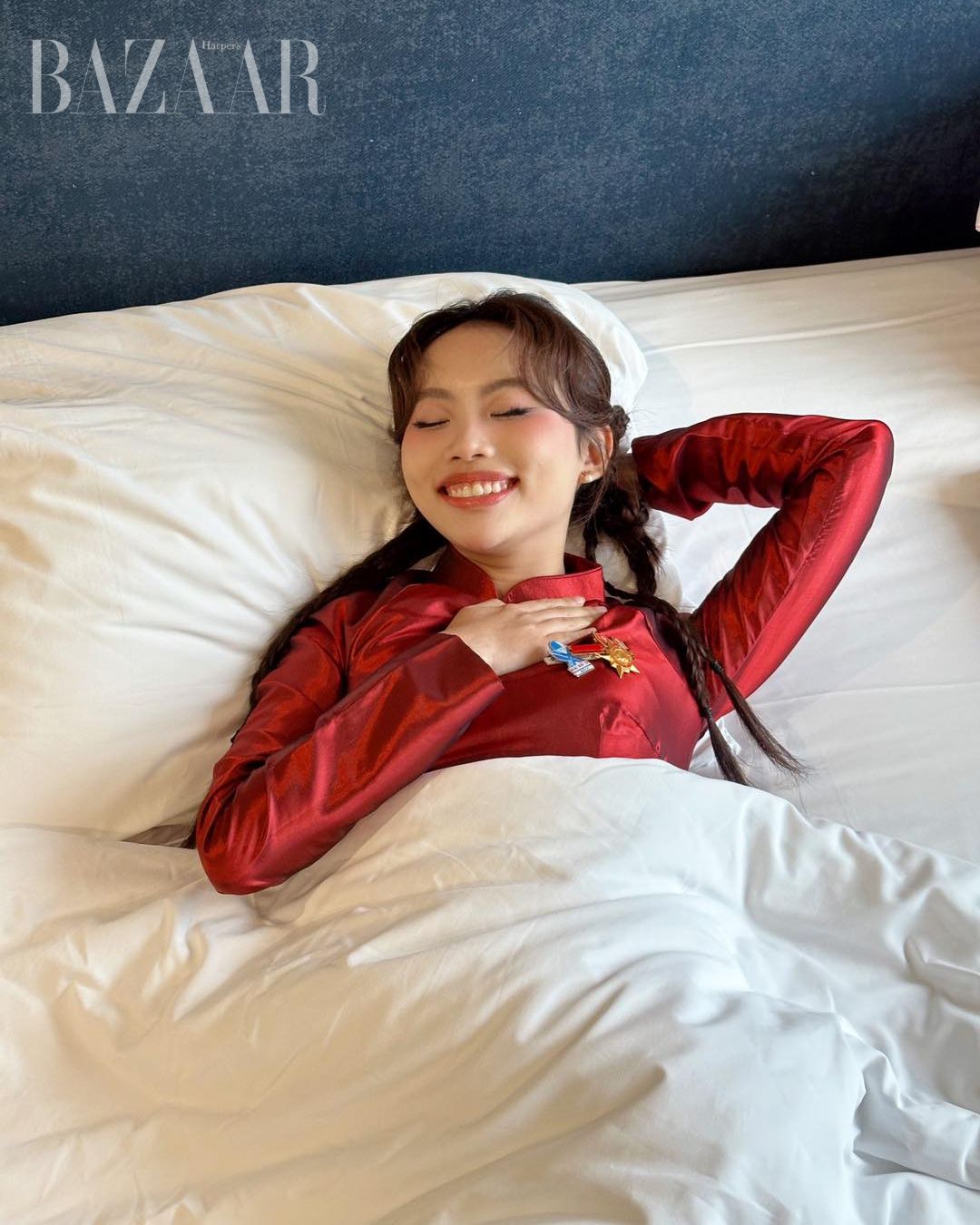 Cô còn hóm hỉnh tiết lộ, đêm trước ngày trọng đại, bản thân diện sẵn áo dài để ngủ vì nôn nao chờ đợi. Sáng hôm sau, khi đến điểm tập kết, Phương Mỹ Chi lại viết: “Chợp mắt cái đã tới sáng rồi cả nhà ơi.” Sự hồn nhiên đó càng khiến khán giả yêu mến, bởi đằng sau ánh hào quang sân khấu, cô vẫn giữ nét giản dị của một cô gái trẻ mang trong mình tình yêu nồng nàn dành cho đất nước.