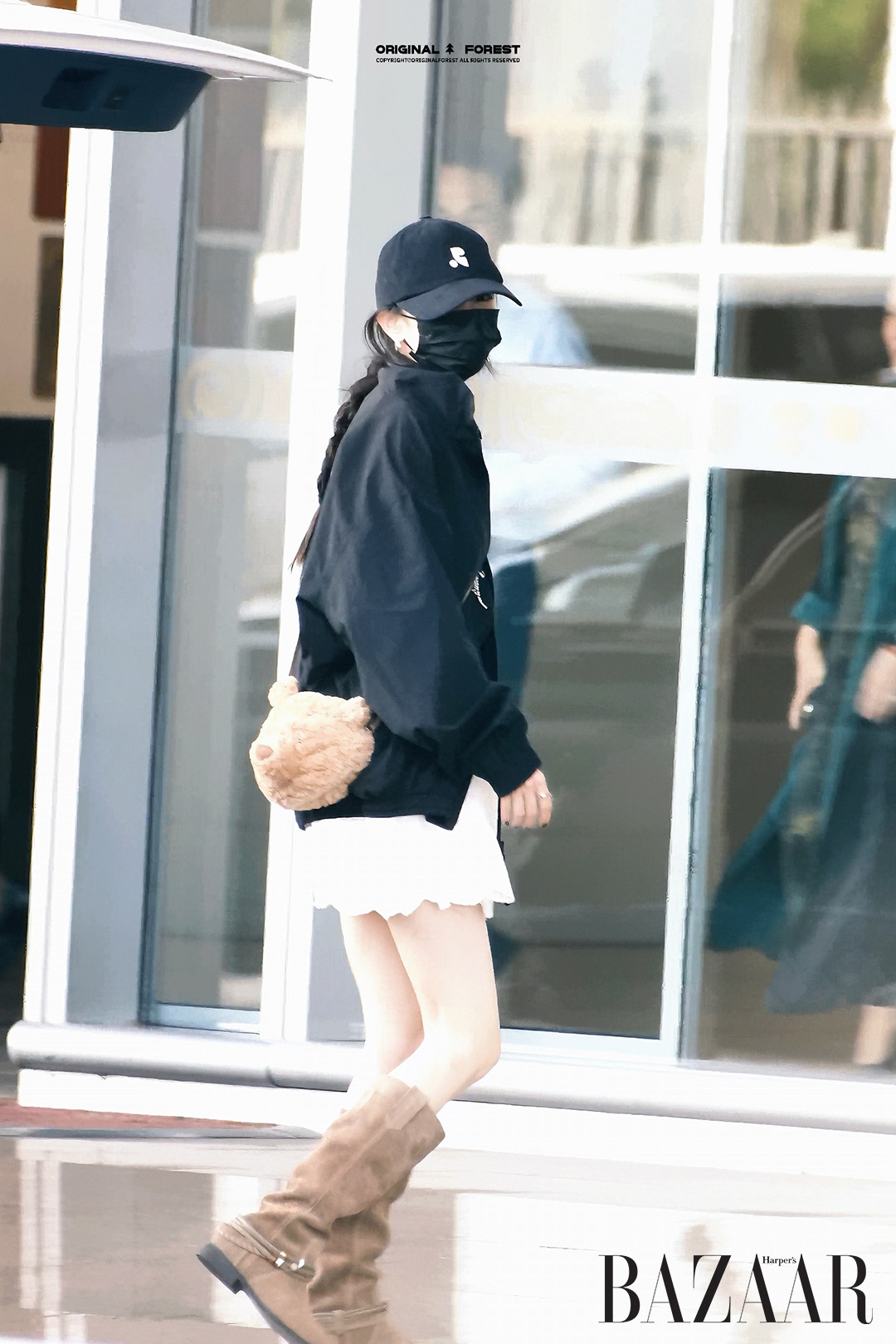 Điểm nhấn của outfit nằm ở chiếc túi đeo chéo người Bartholomew Bear Bag của Jellycat vừa nghịch ngợm vừa cá tính. Cô hoàn thiện outfit bằng bốt cao cổ thuộc BST Thu Đông 2025 của Staccato. Diện mạo tựa một nữ sinh học đường, nếu không nói chẳng ai biết rằng cô đã 38 tuổi.