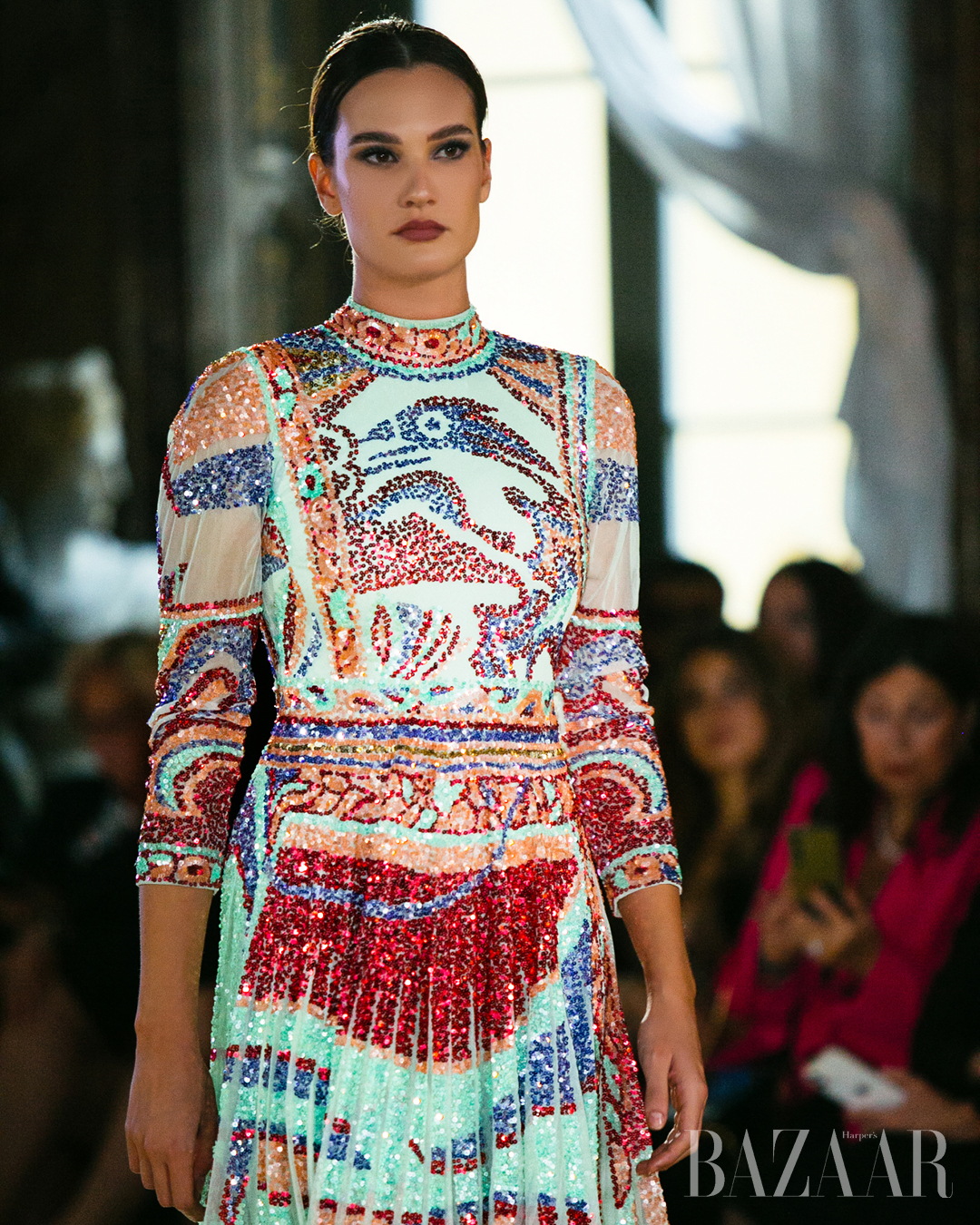 One of the most distinctive aspects of the collection is the dialogue between opulence and modesty, an equilibrium deeply rooted in Middle Eastern aesthetic culture and reinterpreted through a contemporary couture lens. Rich materials and elaborate decoration coexist with a sense of restraint and elegance, creating a form of luxury that is expressive yet discreet.