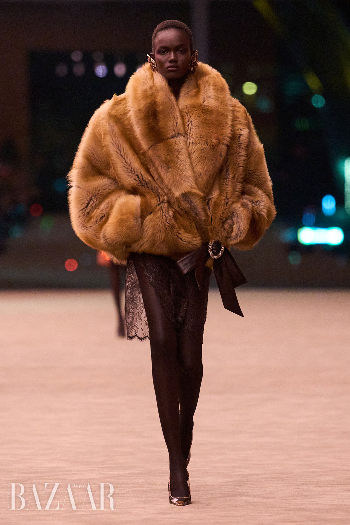 Hoàn thiện bộ sưu tập là những chiếc áo khoác lông to bản, mang đến chút drama cho các form dáng ôm sát. Tất cả đều được thể hiện trong bảng màu Maillard đã mang đến phong vị vượt thời gian cho Saint Laurent.