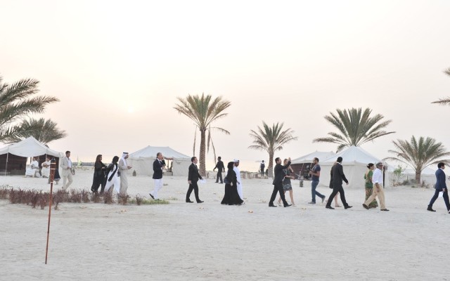 Địa điểm diễn nằm cách bờ biển khoảng 800 mét, xung quanh là những hàng cây cọ, xương rồng mọc trên bãi cát đặc trưng của vùng sa mạc.