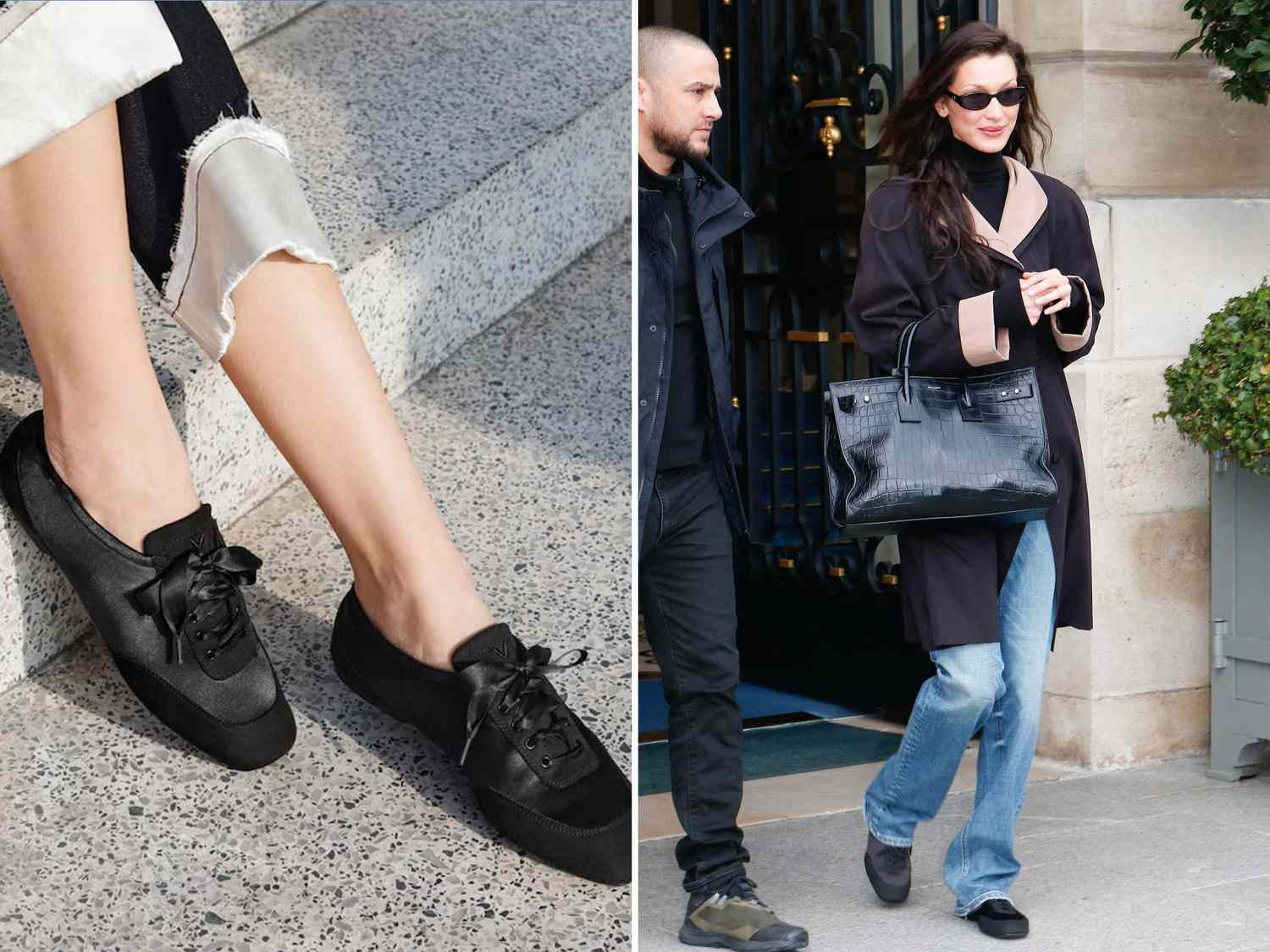 Bella Hadid mang đôi giày Sneakerina của thương hiệu bình dân Vivaia trong ngày xuống phố New York dịp mùa xuân 2025. Ảnh: Michael Stewart