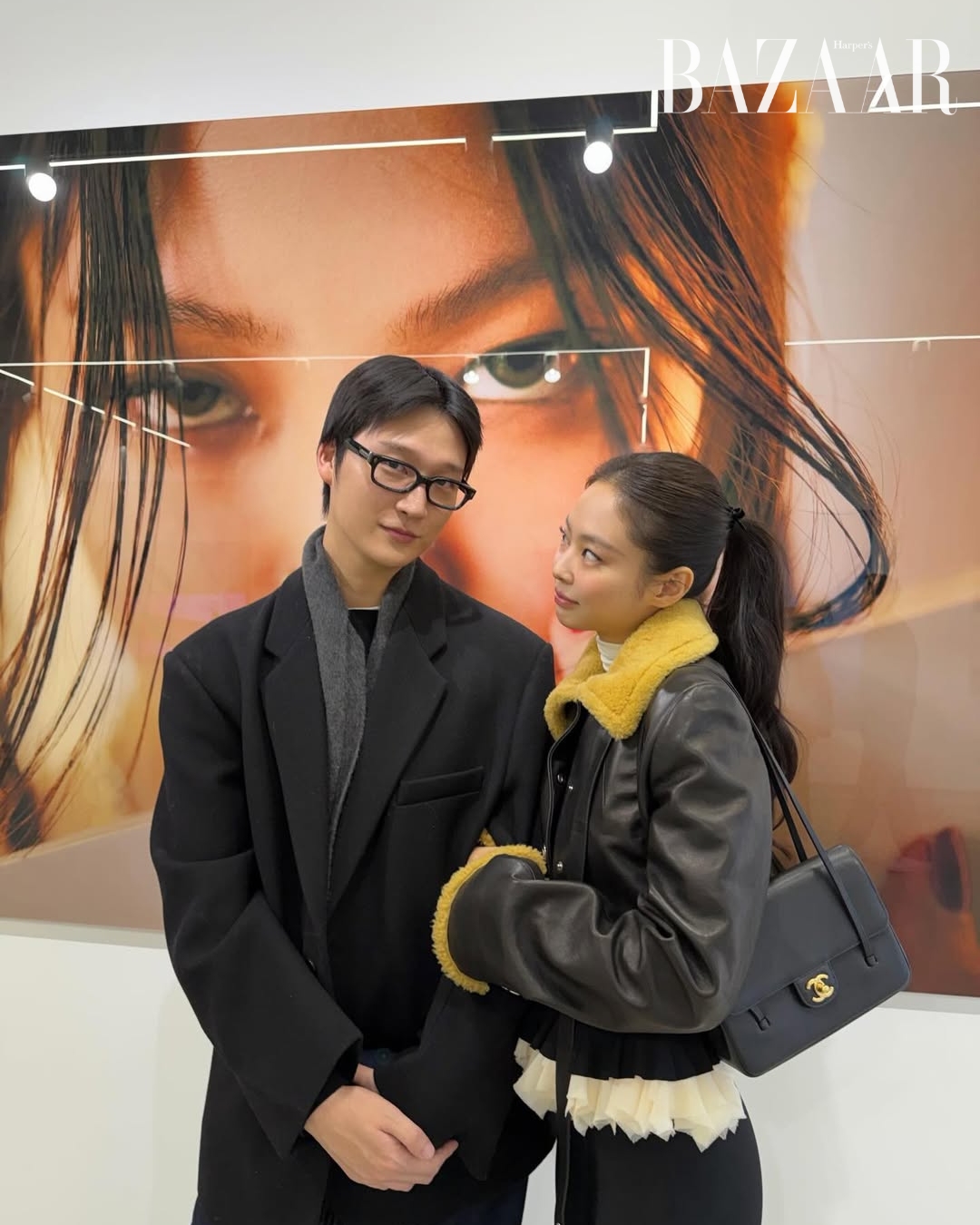 Jennie đeo túi xách Chanel Small Flap Bag trong buổi ra mắt triển lãm J2NNI5 ở Hàn Quốc