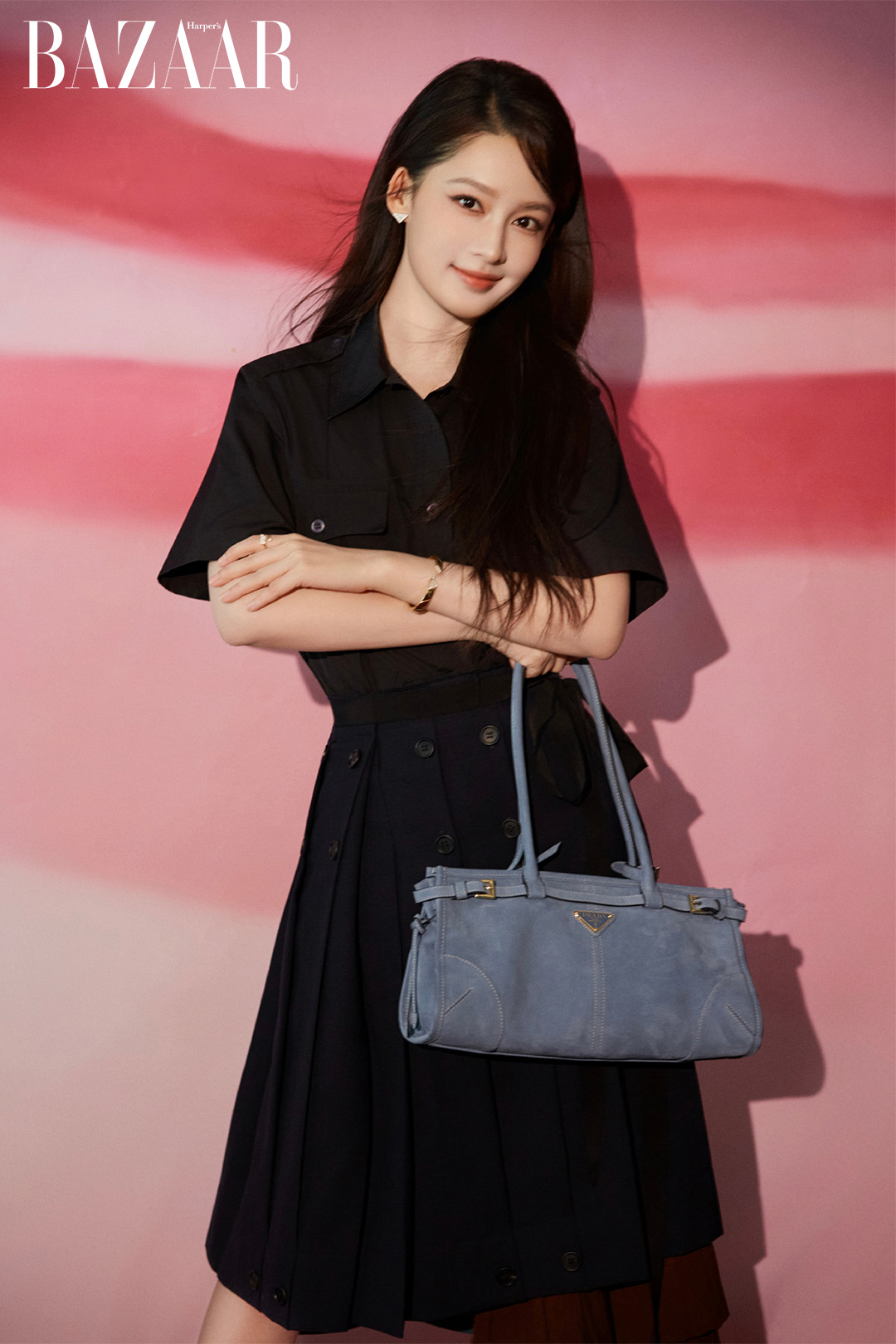 Xuất hiện cùng Dương Mịch, chiếc túi xách Prada mới này lại thanh lịch, làm toát lên tinh thần cô gái công sở hiện đại. Không kẹp nách túi xách, Dương Mịch chọn đeo túi qua khuỷu tay, phần quai xách dài và mảnh dẻ vừa vặn với vóc dáng mảnh mai của nữ diễn viên.