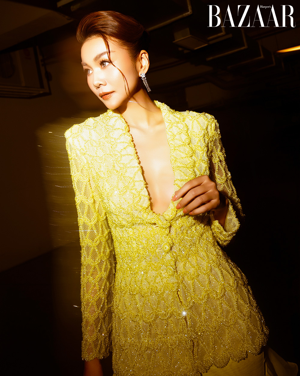 Khi được hỏi về yếu tố để đào tạo nên một người mẫu chuyên nghiệp, cô đưa ra tỷ lệ cụ thể: 40% đến từ tố chất và tiềm năng, 30% từ thái độ, và 30% còn lại là bản lĩnh. Theo cô, rất nhiều thí sinh sở hữu ngoại hình và kỹ năng tốt, nhưng lại thiếu tư duy nghề nghiệp và khả năng thích ứng với áp lực thực tế.