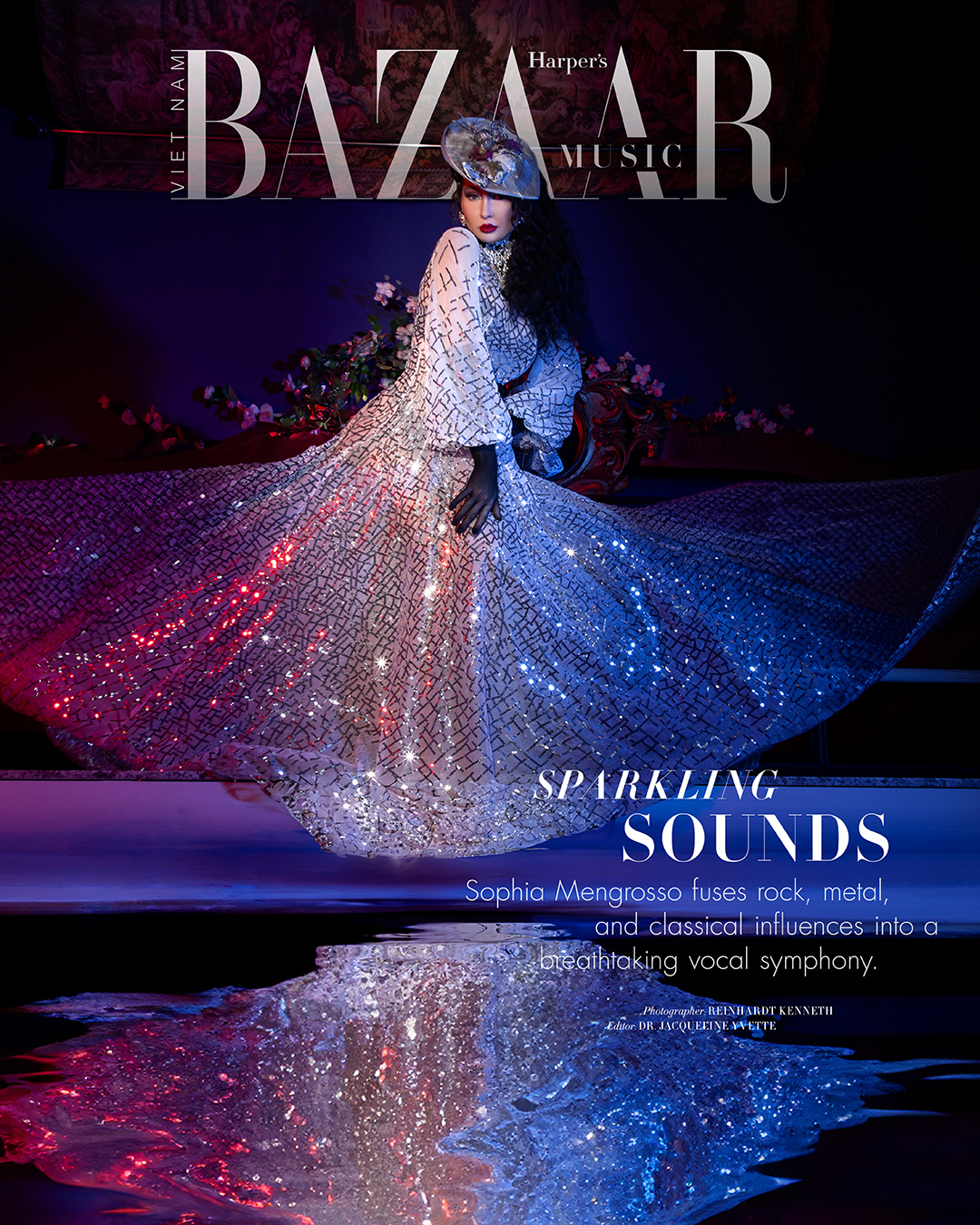 Mesmerize yourself with the mystical allure of Sophia Mengrosso, a classically trained opera singer from Siberia that is making noise in the fashion and music industry with her powerful voice and eclectic fashion style. A woman of many talents, she embodies the regal essence of classical music with her ability to play the piano and harp captivating audiences worldwide.