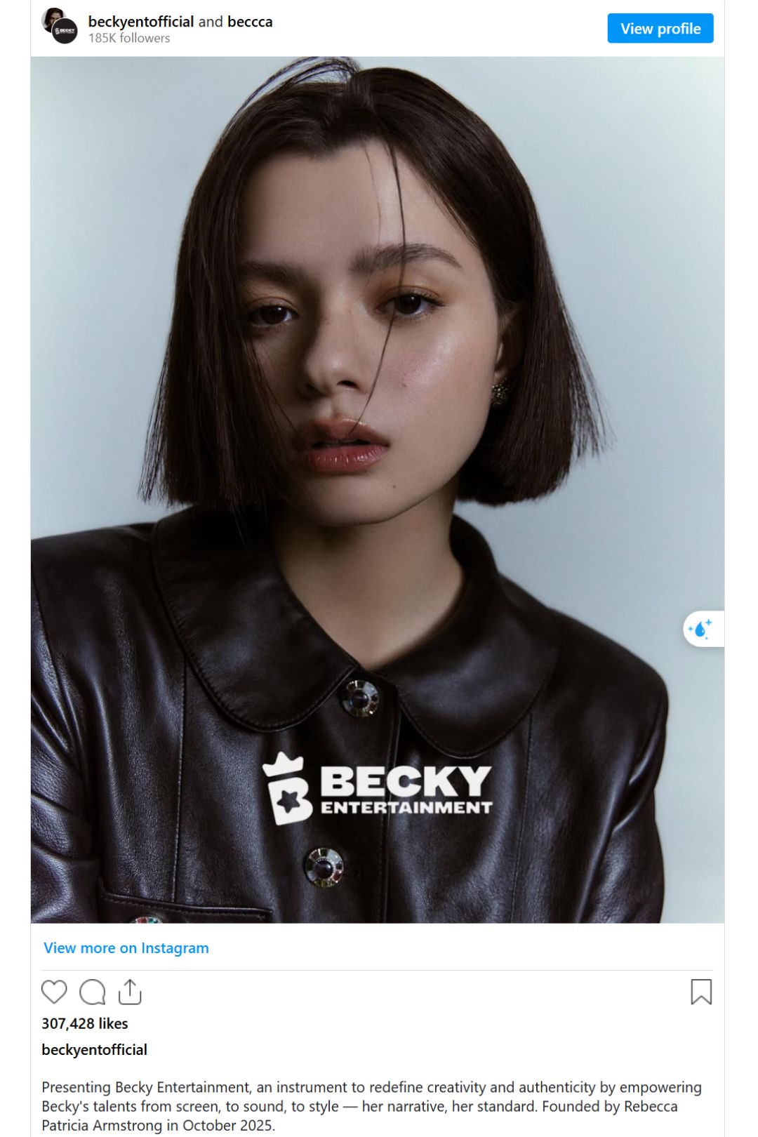 Một chương mới trong sự nghiệp của Becky bắt đầu khi cô chính thức rời công ty quản lý cũ để thành lập đế chế riêng mang tên Becky Entertainment. Ở tuổi 23, Becky không chỉ là nghệ sĩ mà còn là một Girl Boss thực thụ, trực tiếp quản lý và định hướng cho các hoạt động từ âm nhạc, phim ảnh đến thời trang.