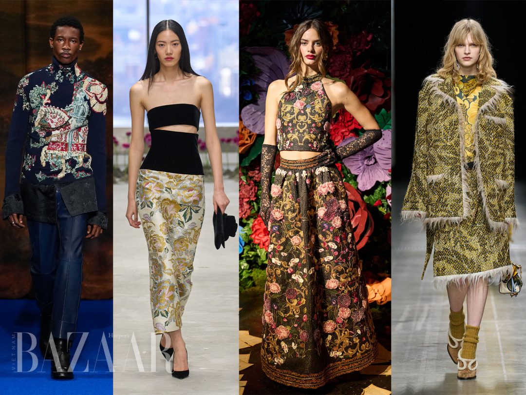 Từ trái sang: Ferragamo, Khaite, Erdem, Dries Van Noten. Ảnh: ImaxTree.