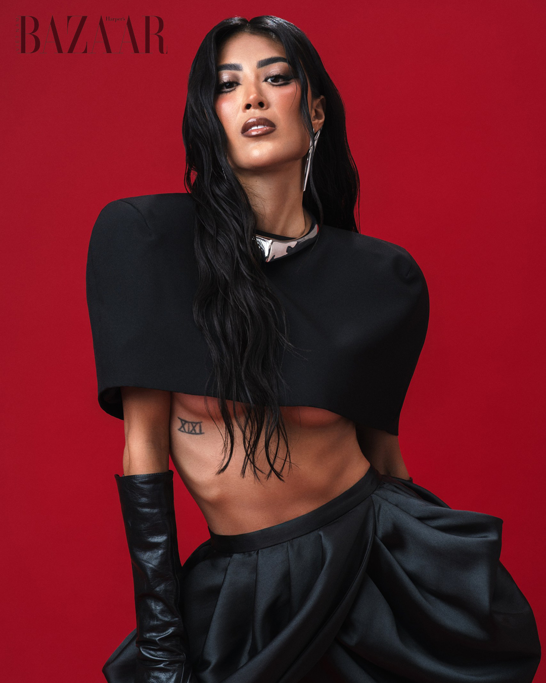 Photographer: Michael Franco. Fashion Architect: Anthony Leroux. Stylist Assistant: Jeno Ki. Master hairstylist: Kimberly Allison and Shay Armin. M.U.A.: Angel Sanchez. Jewelry: Nashrow, Alis Volat Jewelry & Piercings. Production: Breaking Barriers UAE.