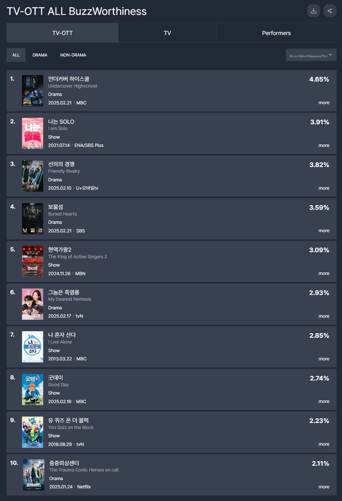 - Friendly Rivalry đứng thứ 3 trong tất cả các chương trình TV, phát trực tuyến hồi cuối tháng 2, đầu tháng 3. Ảnh: Good Data