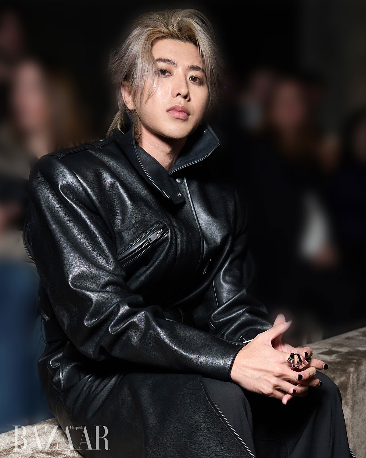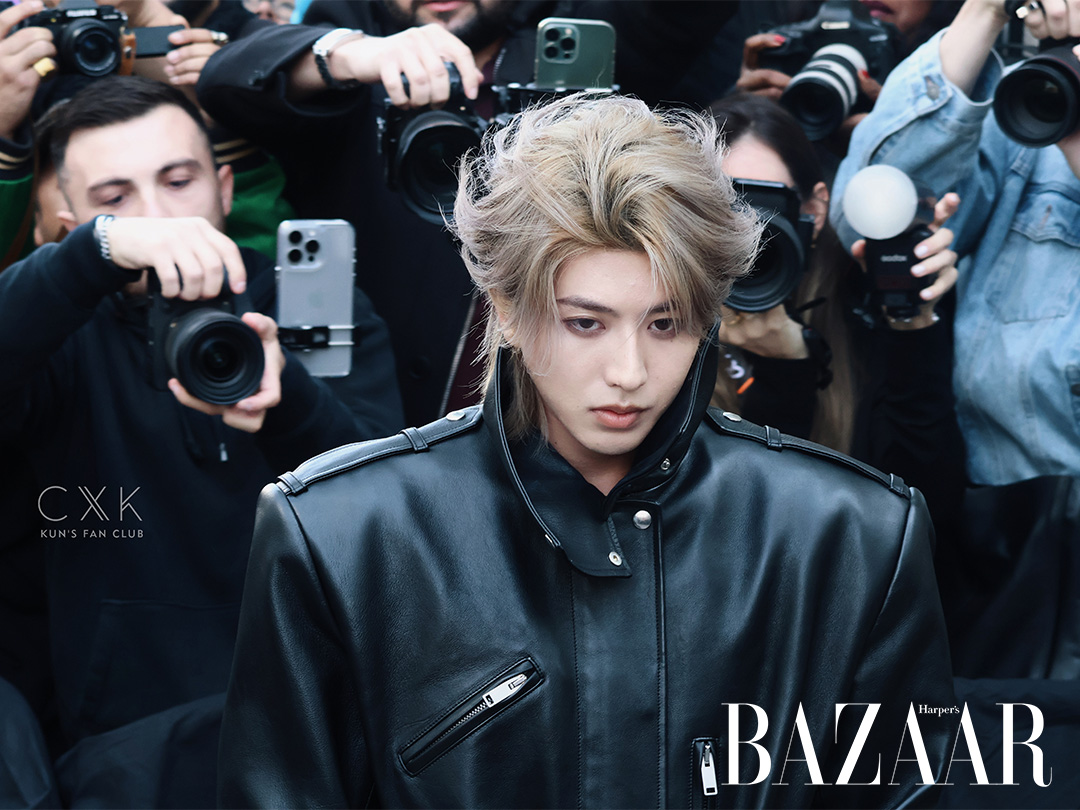 Trong chiếc áo khoác da dài, bờ vai rộng, mái tóc bạc, Thái Từ Khôn bước vào không gian tổ chức show Mugler Xuân Hè 2026 đầy ánh đèn flash. Những sợi tóc highlight bạc bắt trọn ánh đèn flash, mang đến một diện mạo siêu thực, tựa nam thần của game hay hoạt hình.