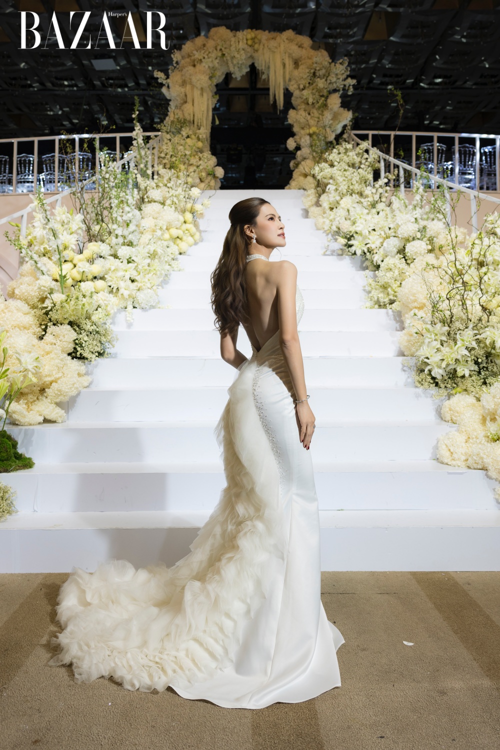 Các ngôi sao mặc đầm tựa cô dâu, nền nã trên thảm đỏ thuần sắc trắng tại show diễn của Lê Ngọc Lâm ở Vietnam Couture Fashion Week 2025