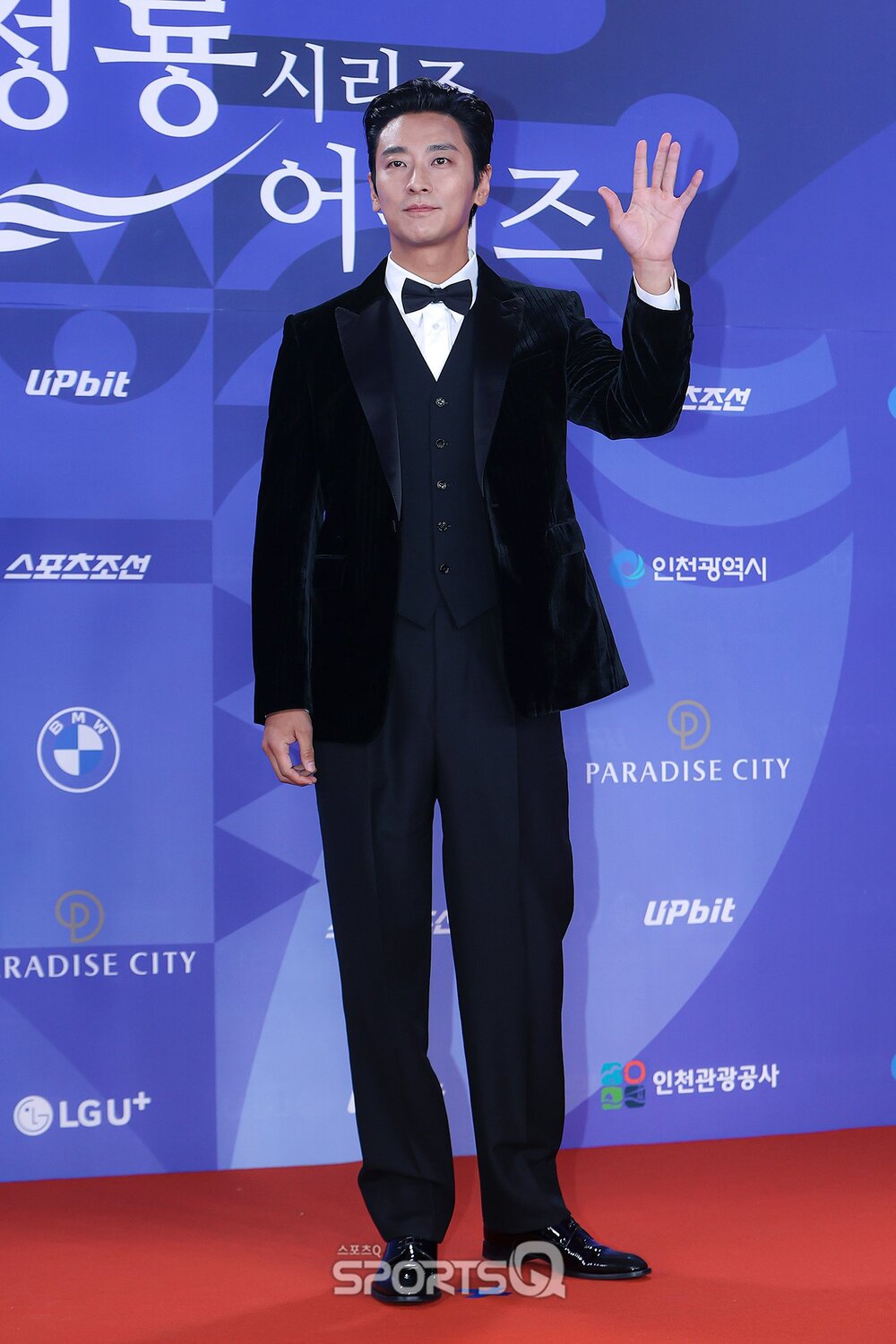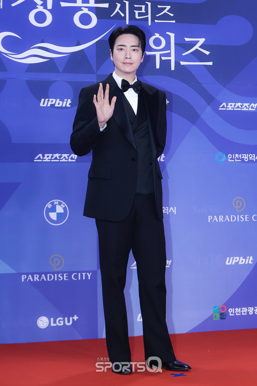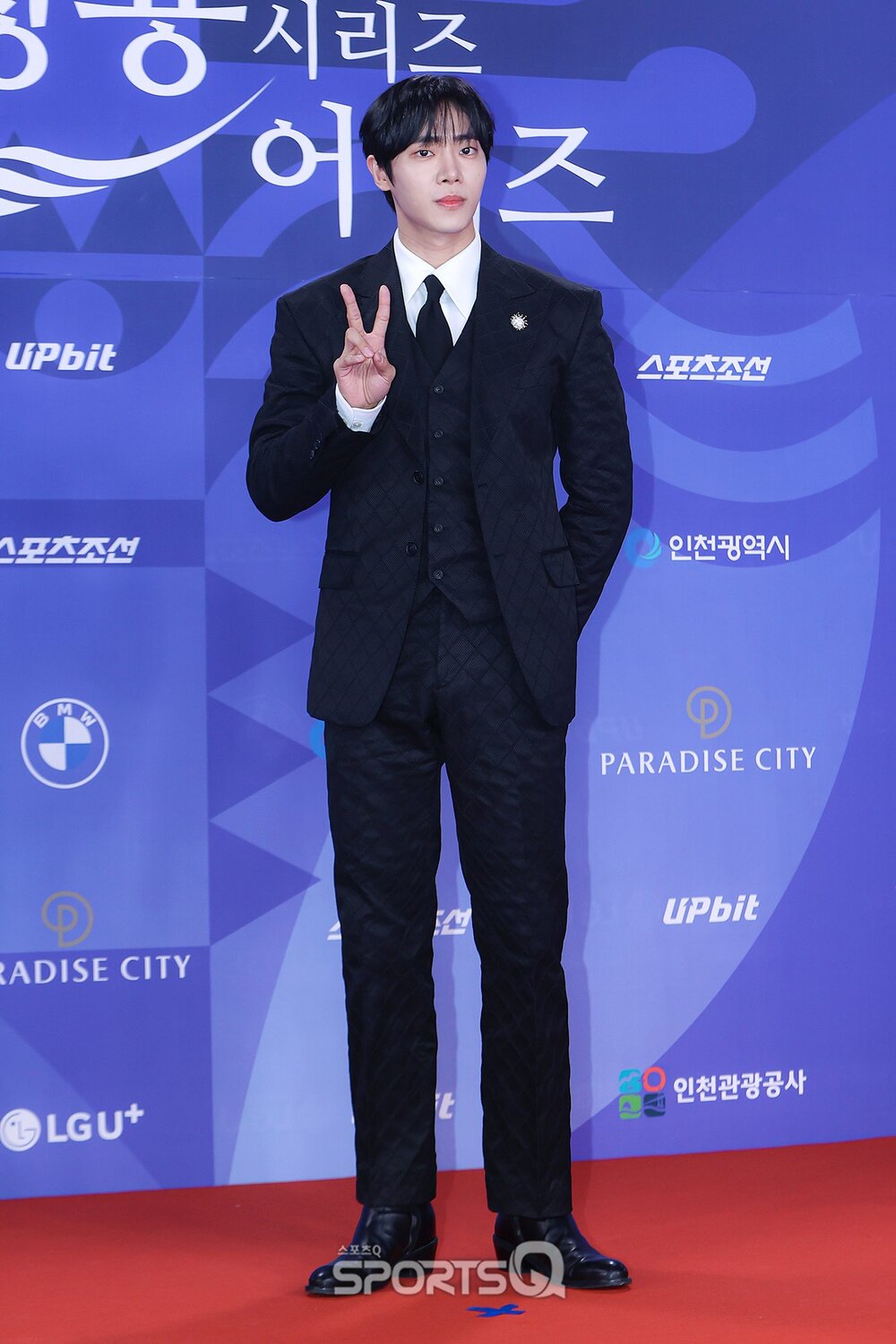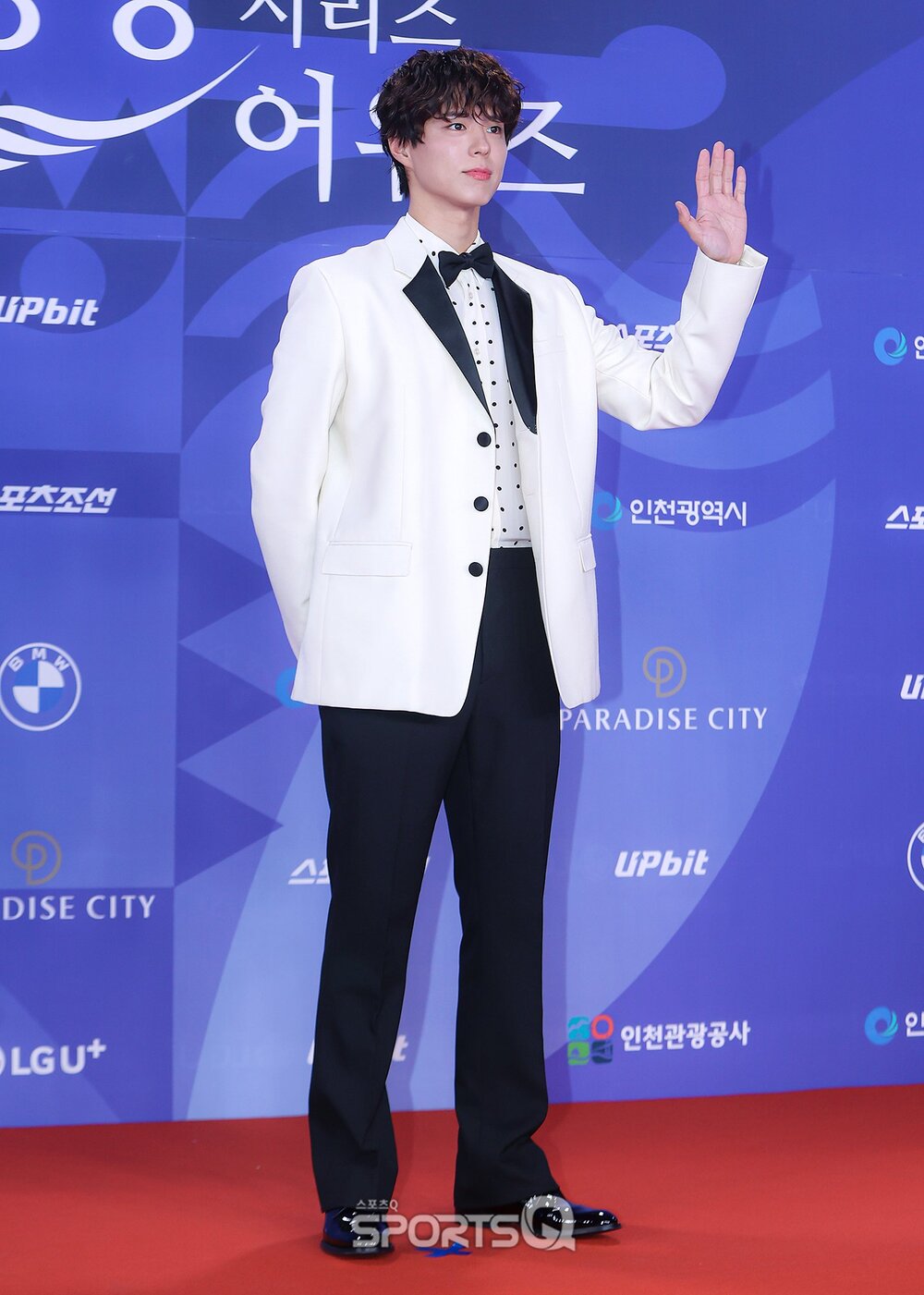 Tại thảm đỏ Blue Dragon Series Awards 2025, tuxedo và suit là lựa chọn hàng đầu cho các khách mời nam. Ngoài những bộ cánh chuẩn mực quý ông, Park Bo Gum và Choo Young Woo nổi bật với những điểm nhấn hút mắt trên trang phục. Nam chính Khi Cuộc Đời Cho Bạn Quả Quýt mang đến cảm giác gần gũi và tràn đầy năng lượng với chiếc áo sơmi chấm bi, trong khi ngôi sao trẻ Choo Young Woo lựa chọn suit với hoa văn hình thoi đầy tinh tế, điểm theo ghim cài hình hoa trên ngực áo.