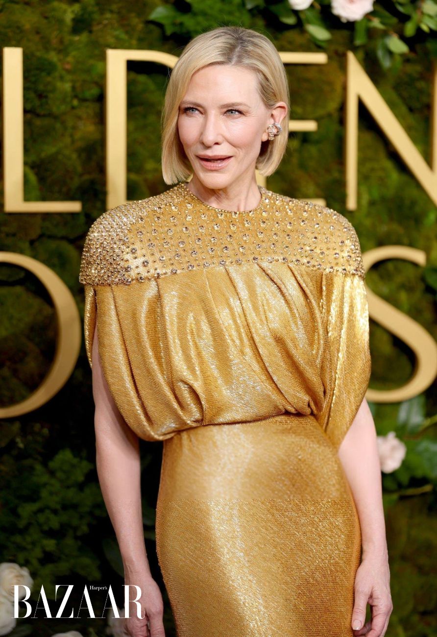 Nếu đó là một chiếc váy đẹp bạn đừng ngại mặc lại nó! Cate Blanchett chứng minh mình trung thành với việc mặc lại trang phục cũ nhiều lần khi dự thảm đỏ, nói lên tinh thần bền vững trong ăn mặc xa xỉ. Cô đã làm điều này nhiều lần ở các liên hoan phim và lễ trao giải khác nhau. Lần này, ở thảm đỏ lễ trao giải Quả Cầu Vàng 2025, Cate Blanchett tiếp tục tái sử dụng chiếc đầm Louis Vuitton từ Liên hoan phim Venice. Tuy nhiên thiết kế đã được tô điểm thêm với các chi tiết đính kết ở phần thân áo để tạo nên sự khác biệt.