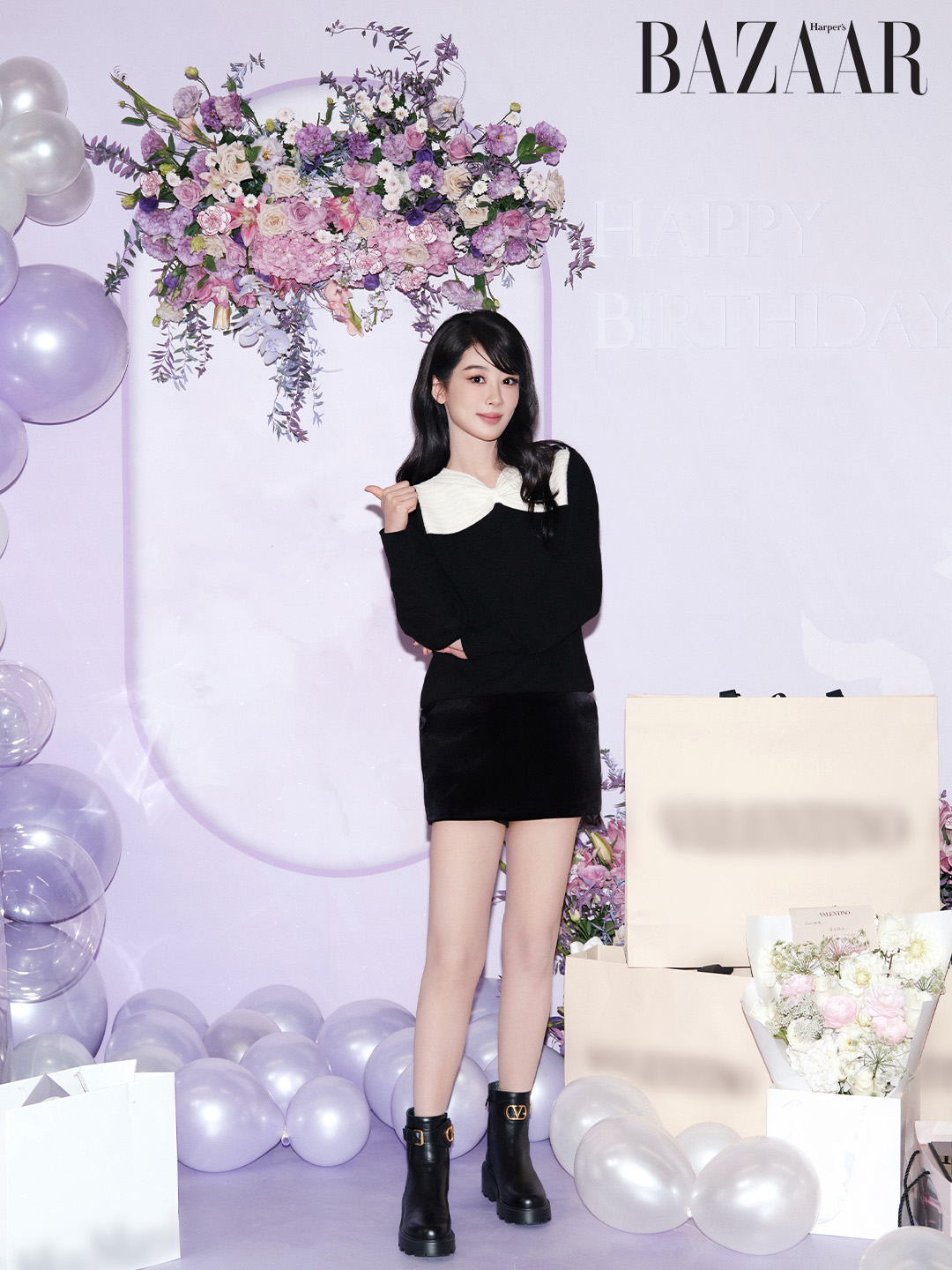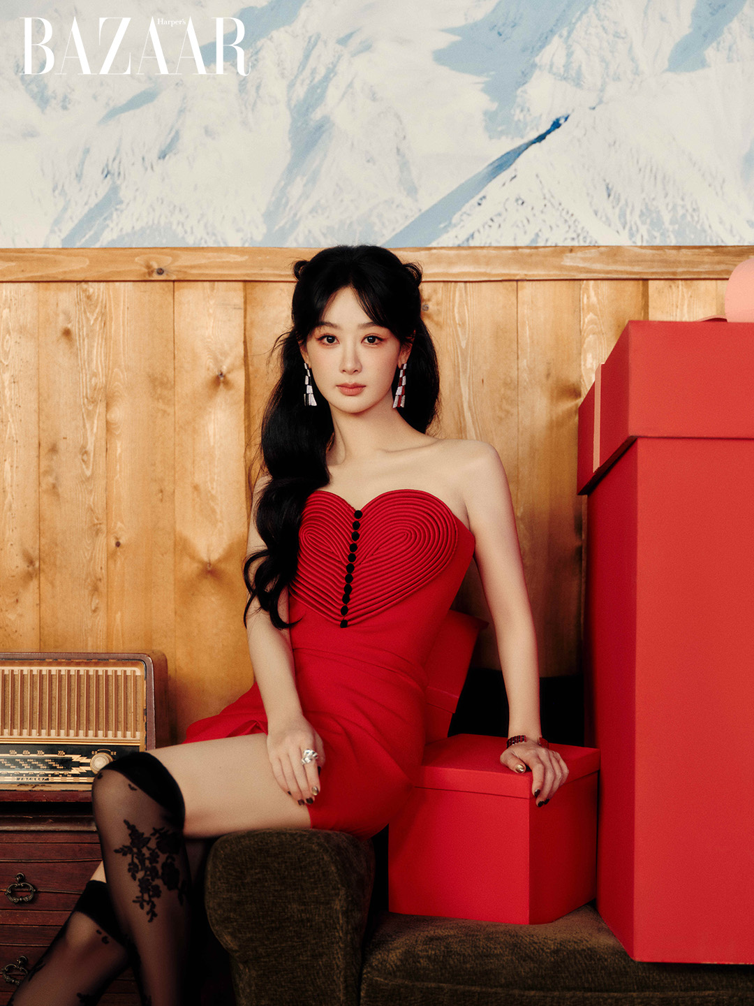 Hoặc, tạo hình trong sự kiện ăn mừng sinh nhật. Dương Tử mặc chiếc đầm đỏ có phần thân trên được trang trí hình trái tim. Cô để tóc dài, hai bên có búi củ tỏi nhỏ, đi kèm mái chẻ ngôi giữa. Suối tóc dài che chi tiết trang trí trên váy, trong khi phần tóc búi củ tỏi tạo cảm giác “cưa sừng làm nghé”, thật sự kém sang.