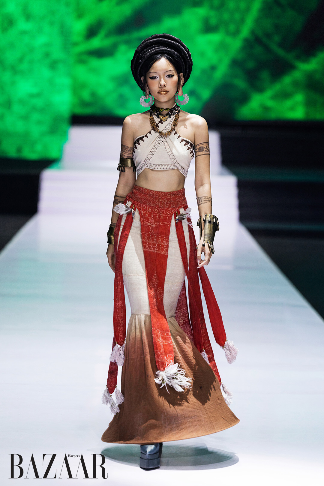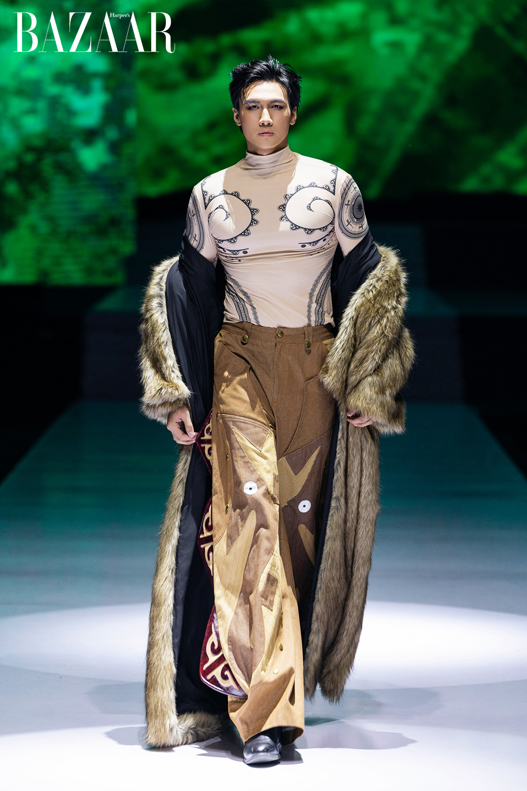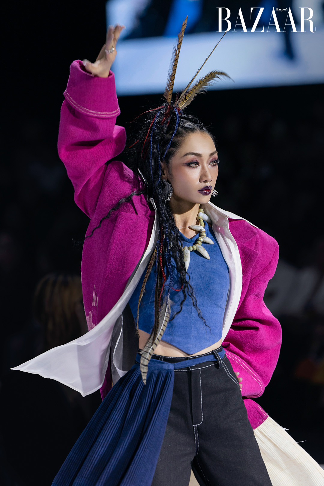 Sở hữu vẻ đẹp lai Tây và kỹ năng trình diễn giàu cảm xúc, Sella Trương luôn được đánh giá cao trên sàn runway. Màn mở màn lần này tiếp tục khẳng định khả năng nắm bắt tinh thần bộ sưu tập của cô, mang đến phần trình diễn mạnh mẽ, cuốn hút và đầy khí chất, mở ra một đêm diễn giàu cảm hứng văn hóa và thời trang.