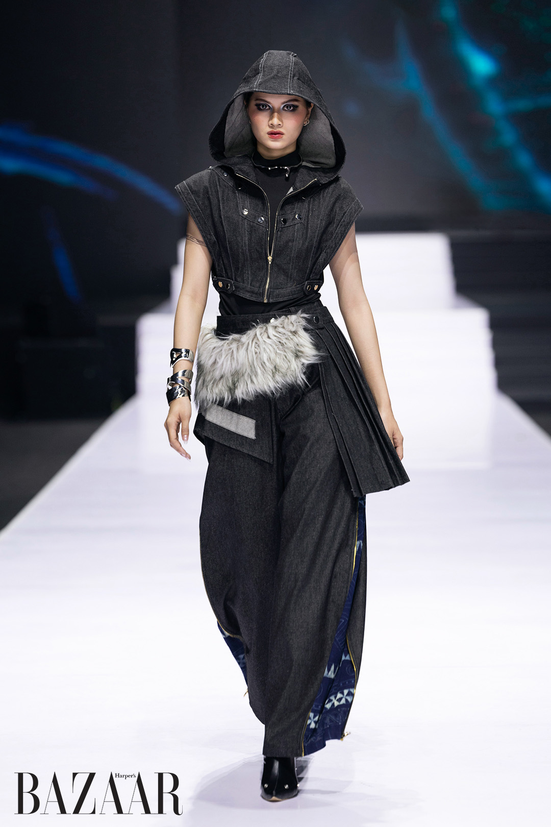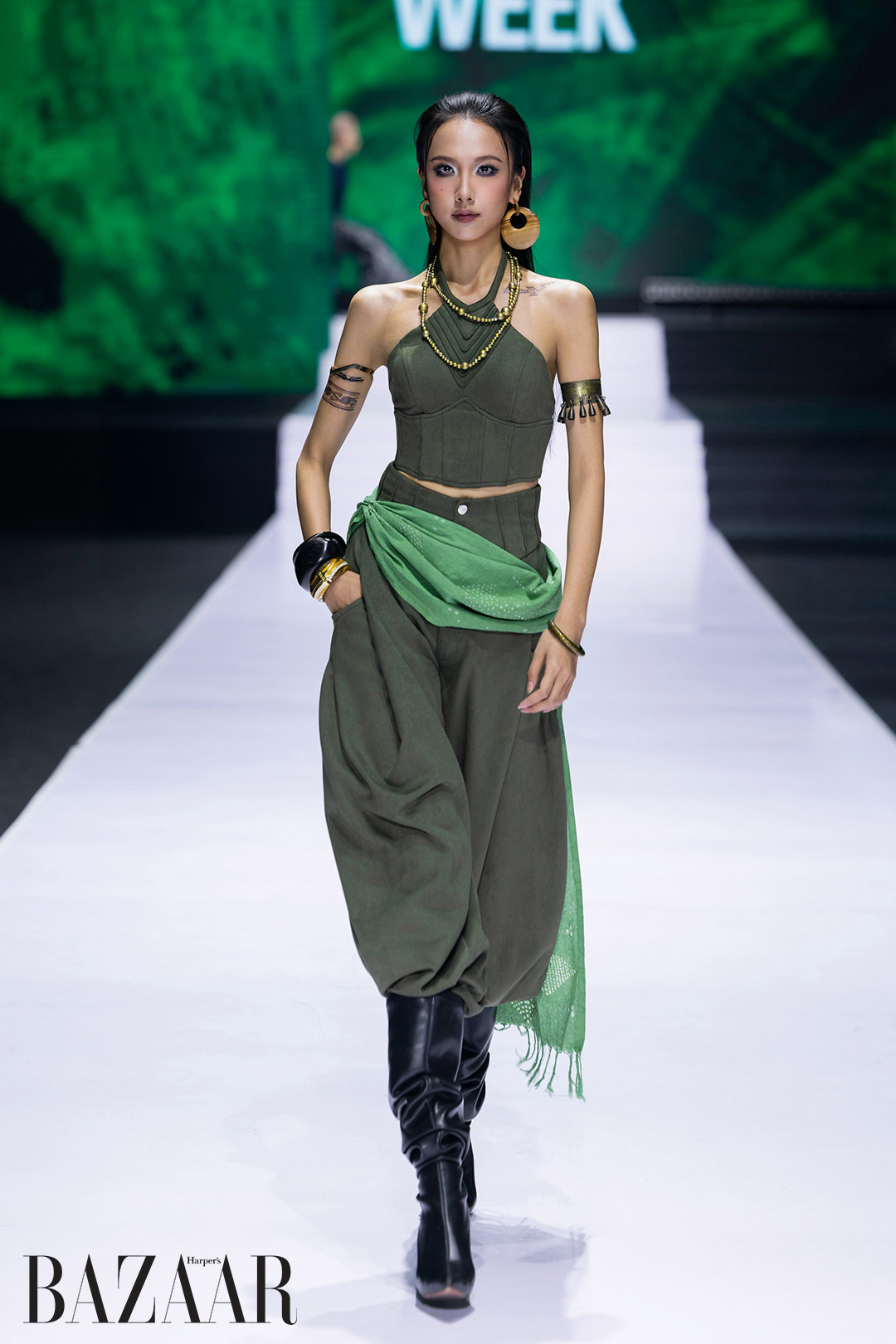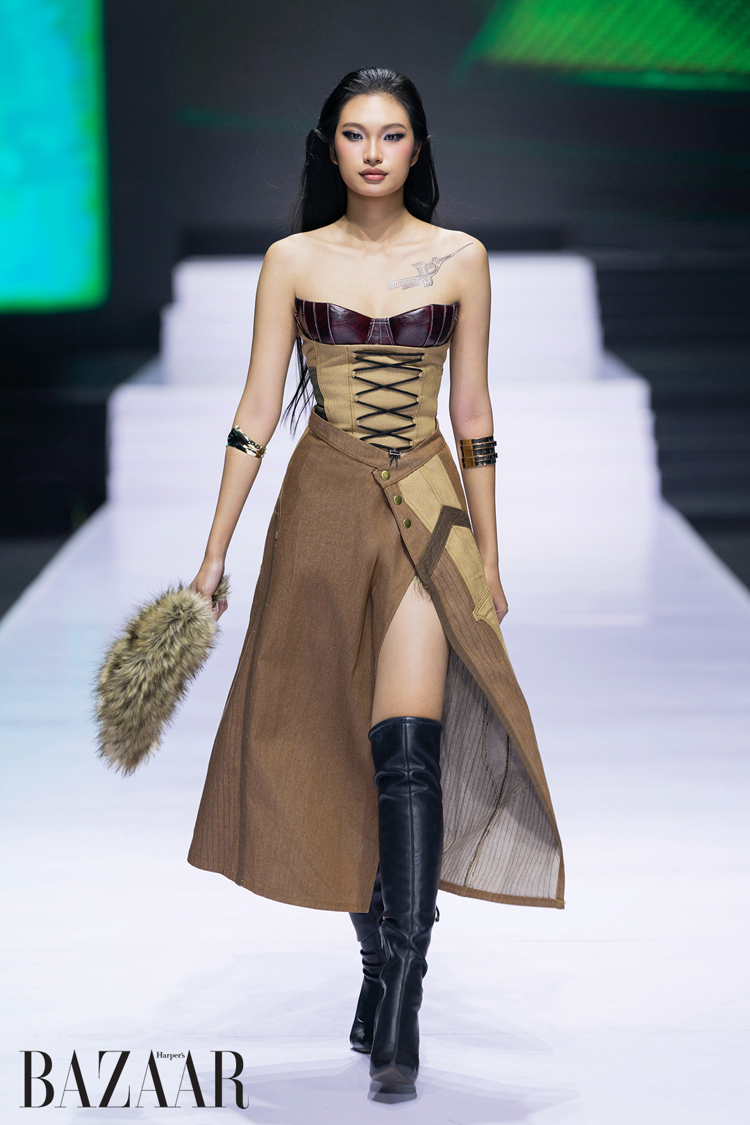 Sở hữu vẻ đẹp lai Tây và kỹ năng trình diễn giàu cảm xúc, Sella Trương luôn được đánh giá cao trên sàn runway. Màn mở màn lần này tiếp tục khẳng định khả năng nắm bắt tinh thần bộ sưu tập của cô, mang đến phần trình diễn mạnh mẽ, cuốn hút và đầy khí chất, mở ra một đêm diễn giàu cảm hứng văn hóa và thời trang.