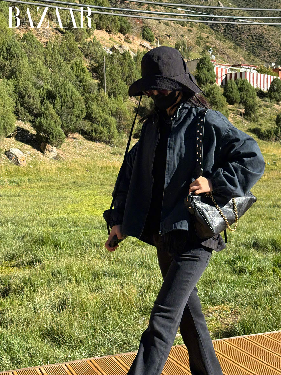 Dương Tử chọn phiên bản to hơn, có khả năng đựng nhiều tư trang hơn. Qua bàn tay phối đồ của cô, chiếc túi xách Valentino Panthea rõ ràng là một món phụ kiện dễ sử dụng hàng ngày chứ không chỉ dành cho những buổi tiệc, như bản phối của Tôn Lệ. Dáng bước nhanh, ánh nhìn hướng về phía trước, Dương Tử như bước ra từ khung hình của một bộ phim điện ảnh, cô gái thành thị giản dị vẫn khiến người khác ngoái nhìn.