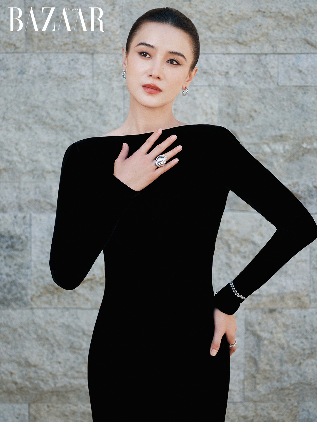 Thiện Y Thuần xuất hiện với váy Alexis Mabille Haute Couture Thu Đông 2024, thiết kế quây đen ôm sát, sequin lấp lánh tinh tế, vừa khoe đường cong vừa tạo hiệu ứng ánh sáng sân khấu tuyệt mỹ. Bộ trang sức Chanel N°5 kết hợp Coco Crush được layering khéo léo, biến cô thành nữ vương của mọi ánh nhìn. Đây là cách nhà mốt nói: “Ngôi sao này xứng đáng được tỏa sáng.”