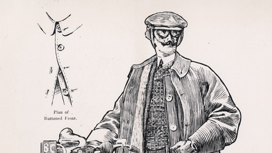 Phi công Claude Grahame-White mặc áo khoác bằng gabardine của Burberry. Ông là người đầu tiên bay từ London đến Manchester trong hạn mức 24 giờ.