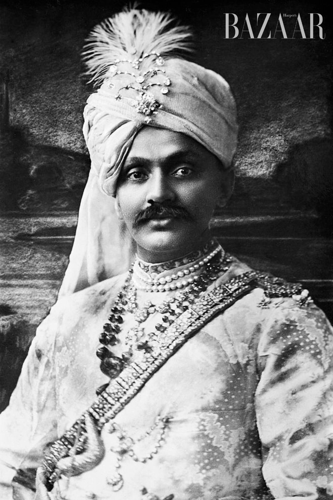Ranjitsinhji Vibhaji là một người sành ngọc quý đồng thời là vận động viên cricket nổi tiếng. Ông sở hữu một bộ sưu tập gồm những món trang sức tuyên ngôn đầy ấn tượng do chính ông đặt làm hoặc thừa kế từ tổ tiên. Trên hình: Chân dung Ranjitsinhji Vibhaji vào năm 1908 với nhiều trang sức ngọc trai, kim cương… Ảnh: Getty Images