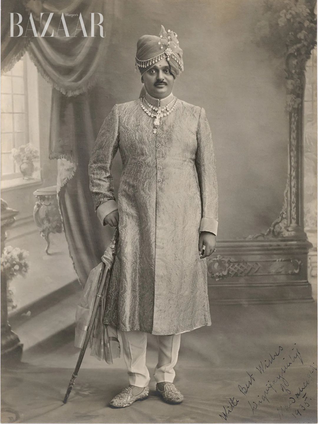 Digvijaysinhji đeo vòng cổ Cartier Toussaint, hình chụp vào năm 1935. Ảnh: Getty Images
