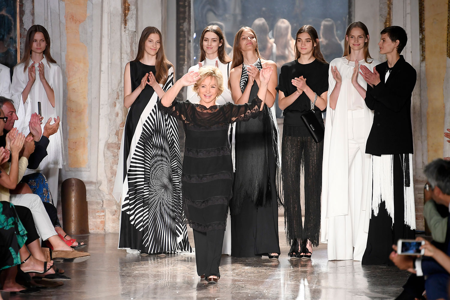 Nhà thiết kế Alberta Ferretti chào cuối show Resort 2019. Ảnh: Giovanni Giannoni/WWD